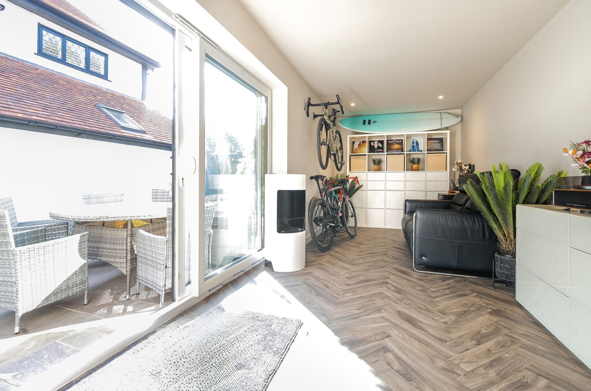Stepping outside, there is a detached self-contained, brick built studio with its own shower room, WC and kitchenette/utility. Ideal for a variety of uses including guest accommodation, rental income or office space for those working from home. This building has been recently re-roofed and has permission for the loft space above (currently used for storage) to be converted to create further accommodation if desired.