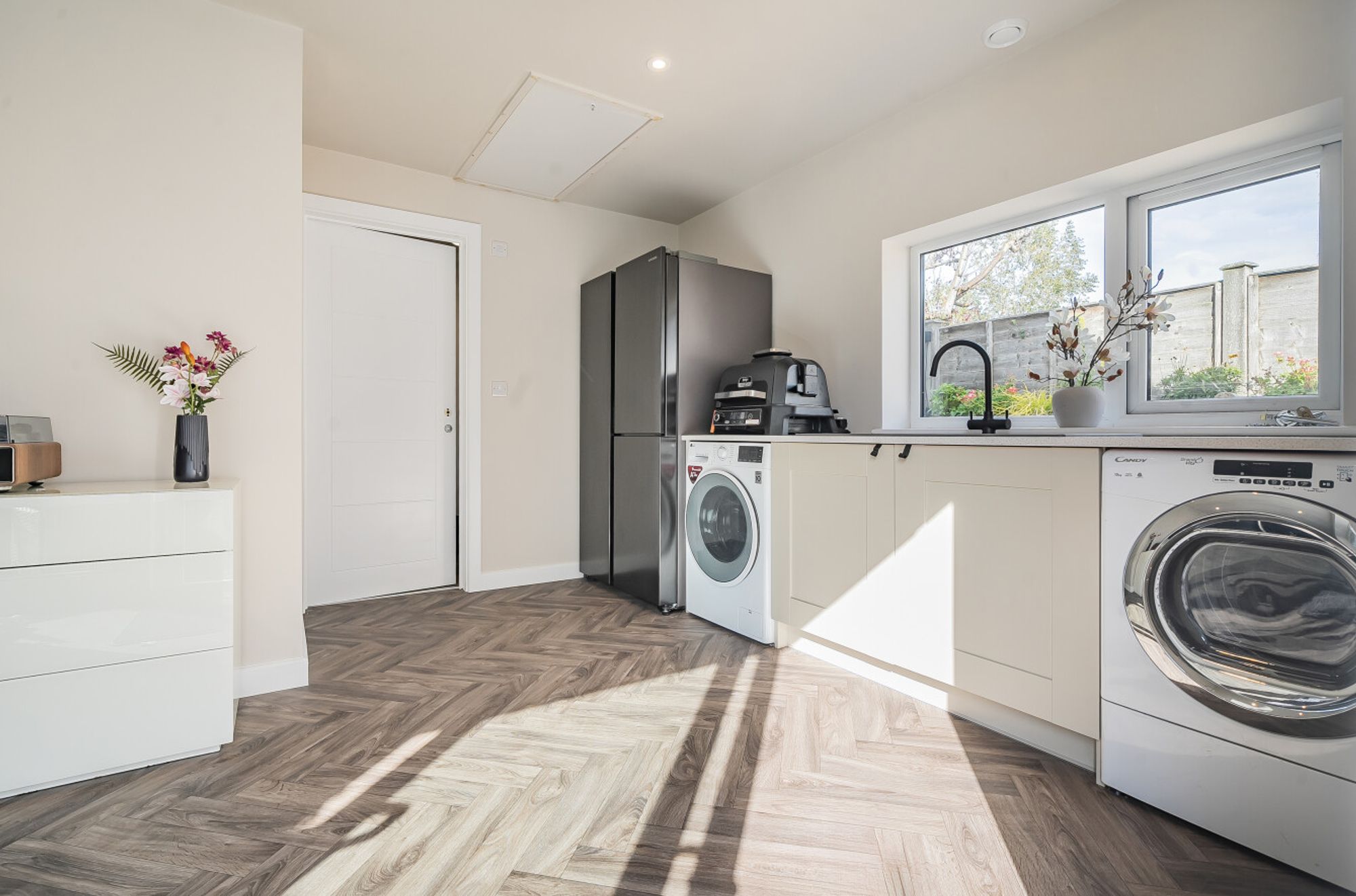 The property provides ample off-road parking to the front of the property, whilst the rear garden is of a generous size and offers a high level of privacy. The rear garden itself is mainly laid to lawn with a sizeable area of patio, recently erected fencing with raised sleeper-borders and a timber shed.