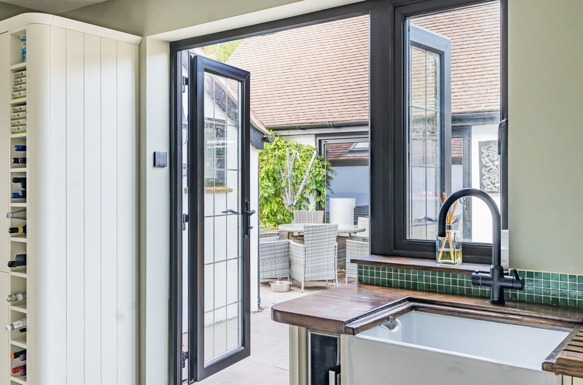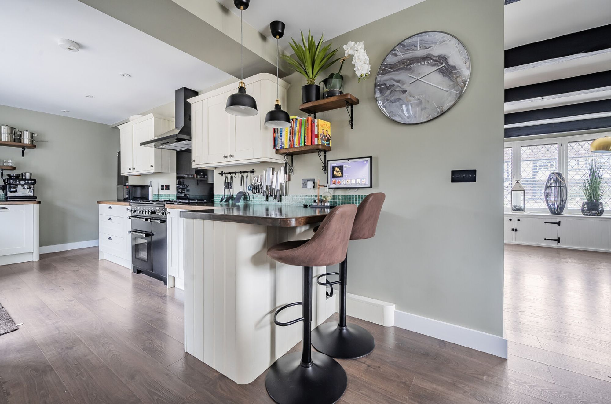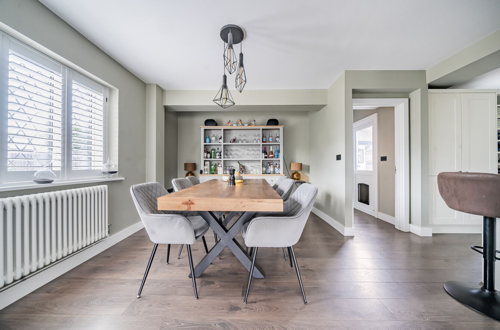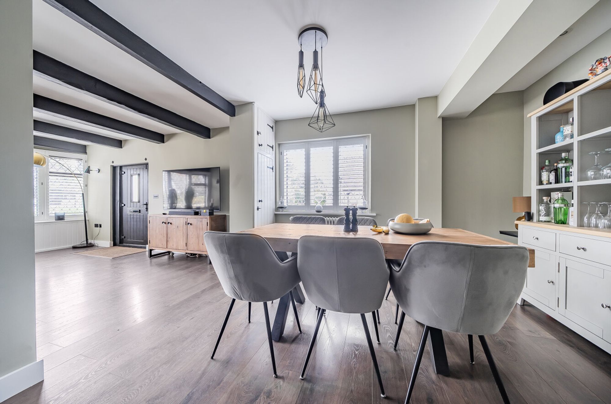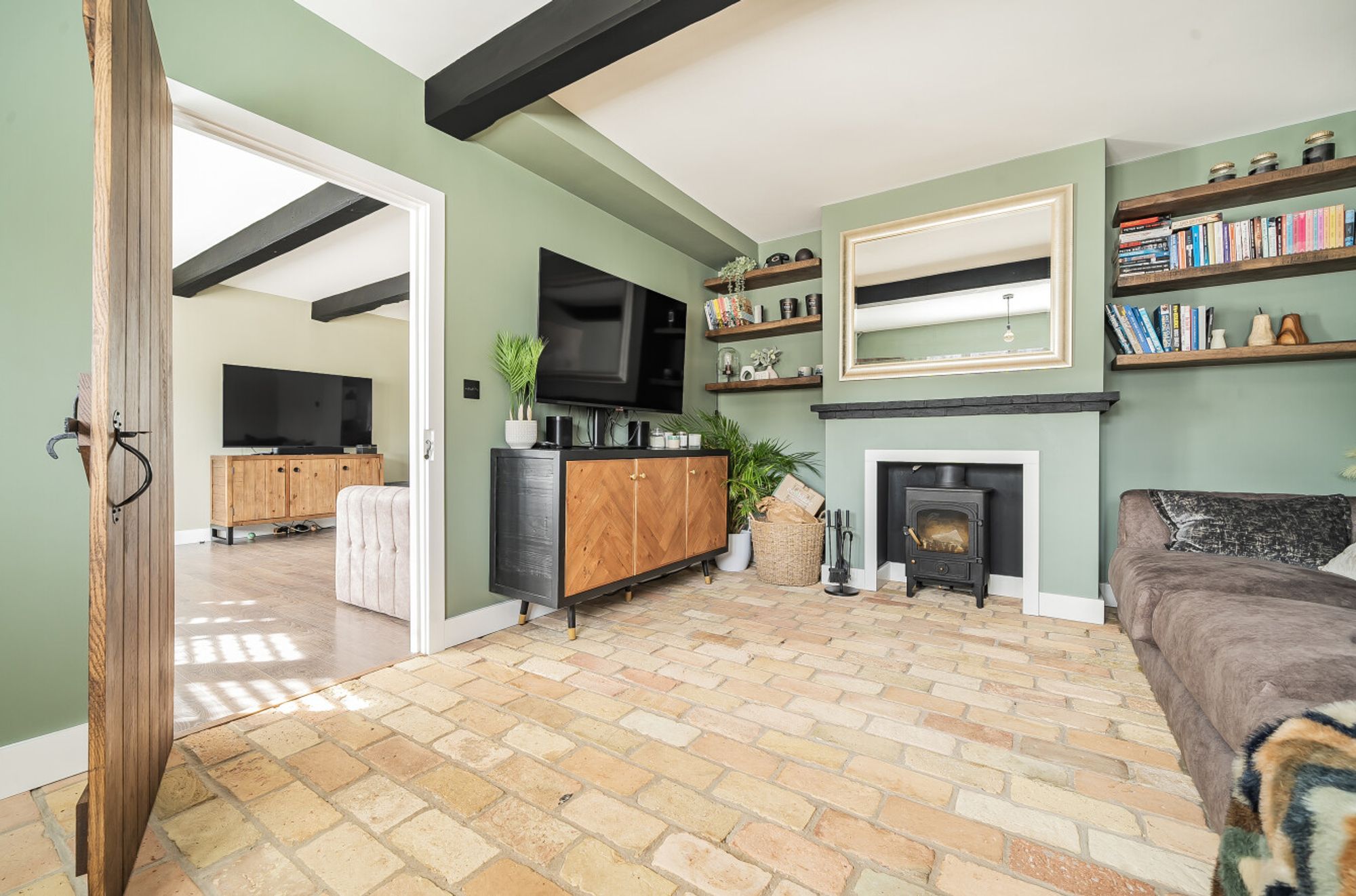 Previously converted from the former village tea rooms and restaurant, this property has been improved throughout and is now beautifully presented, combining modern convenience with classic charm. The ground floor features three main reception rooms, the sitting room with its iconic bow window, a separate snug/playroom with exposed brick floor and feature fireplace, and lastly the dining room which opens into the kitchen to the rear of the property. A modern wet room and toilet complete the ground floor.