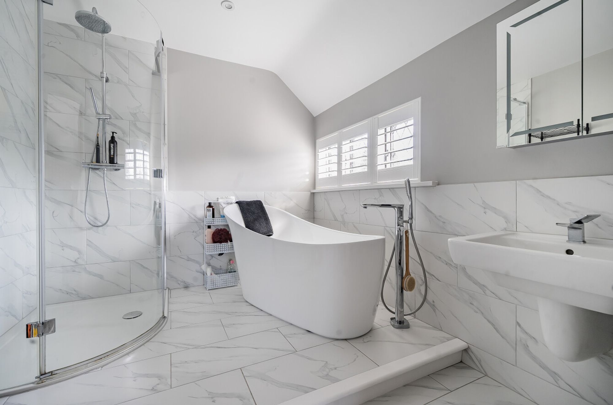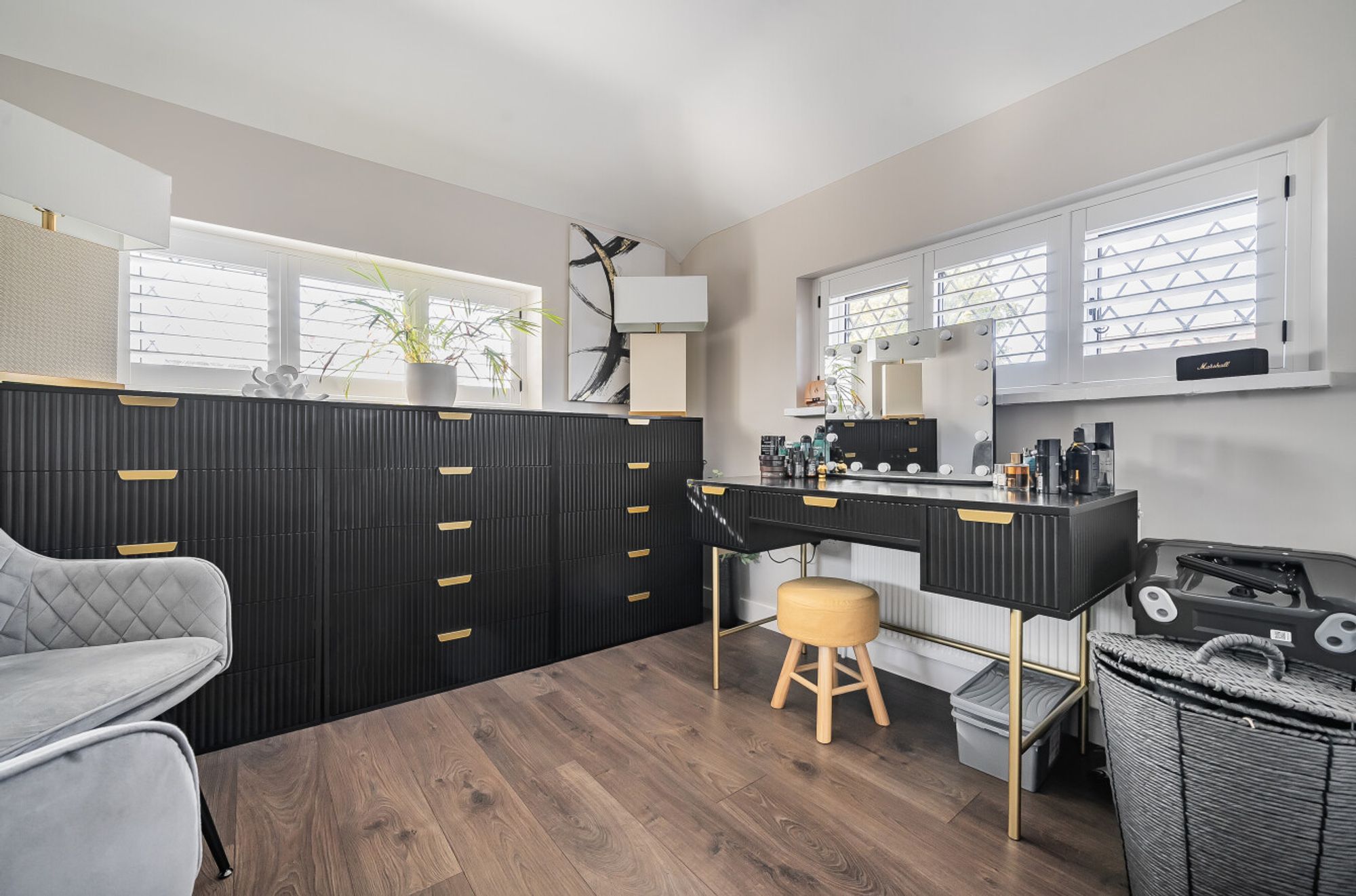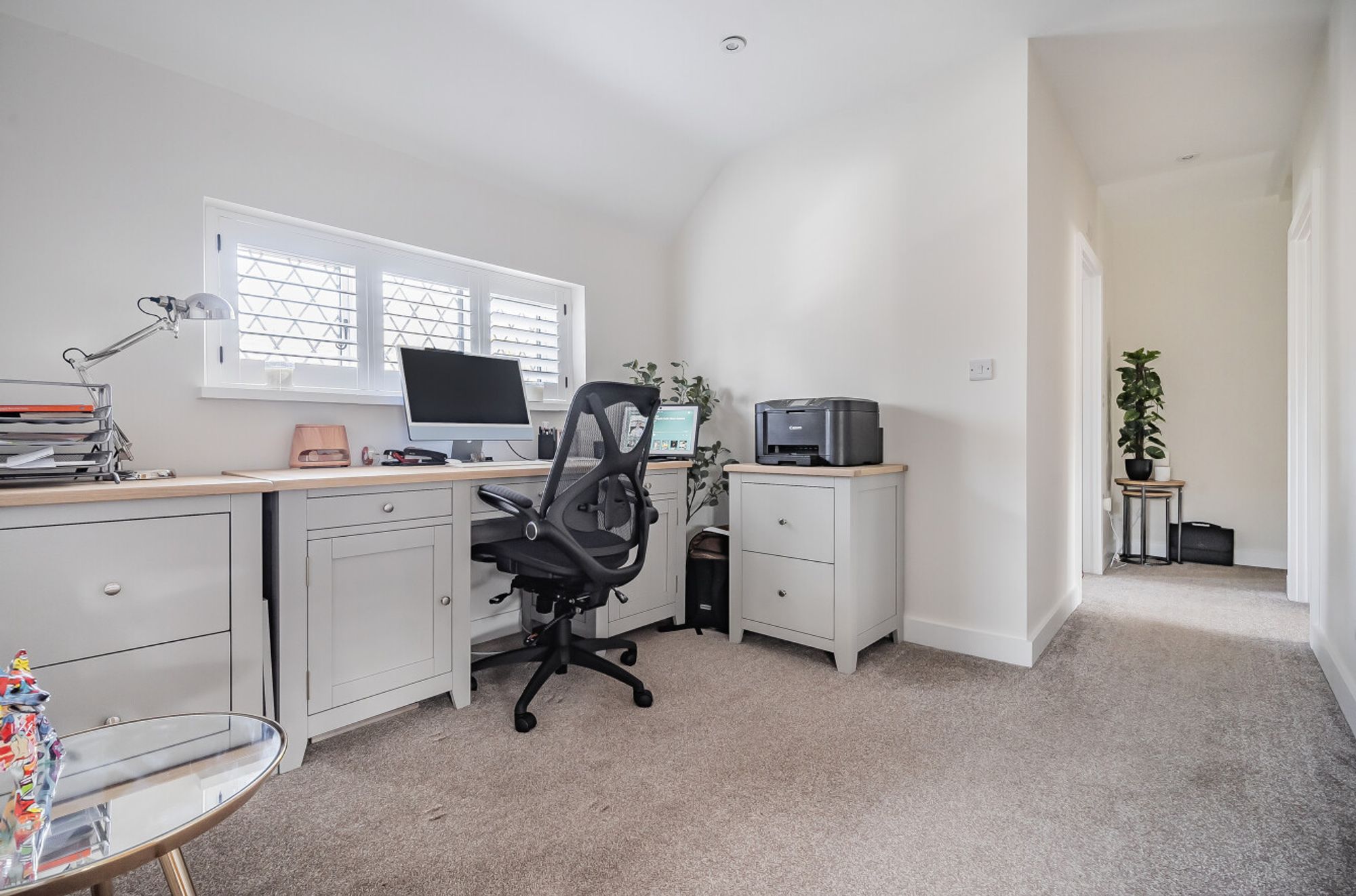 Back inside, the first floor features three well-appointed bedrooms as well as a spacious study area on the landing which could easily be separated off to provide another bedroom if desired. The principal bedroom is generous in size and features a range of fitted wardrobes along with a luxurious en-suite featuring a free-standing bath and separate shower cubicle. Both bedrooms two and three also feature storage, whilst the modern family bathroom completes the accommodation. The property also benefits from a water softener.