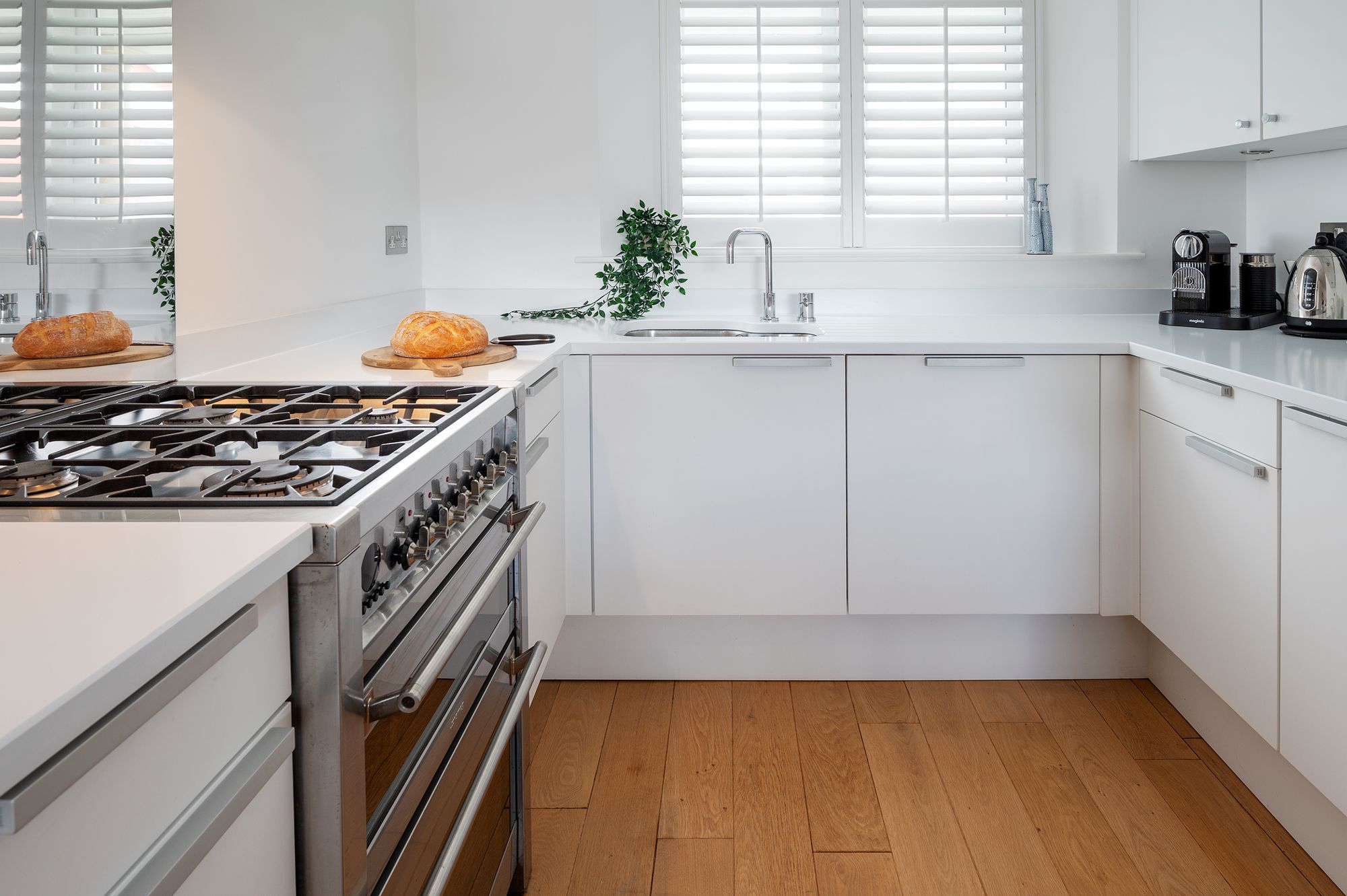 The approach is refreshingly straightforward. Rare level access leads directly to the entrance, where a welcoming Hallway provides useful storage and access to the handy ground-floof Cloakroom, before a glazed door reveals the Living Space. Here the home opens beautifully into a fully integrated Kitchen, Dining and Living Room, designed for contemporary living yet shaped by the rhythm of the river beyond. French doors draw the eye outward and open onto a stone flagged terrace, allowing the interior and exterior to flow together with ease.