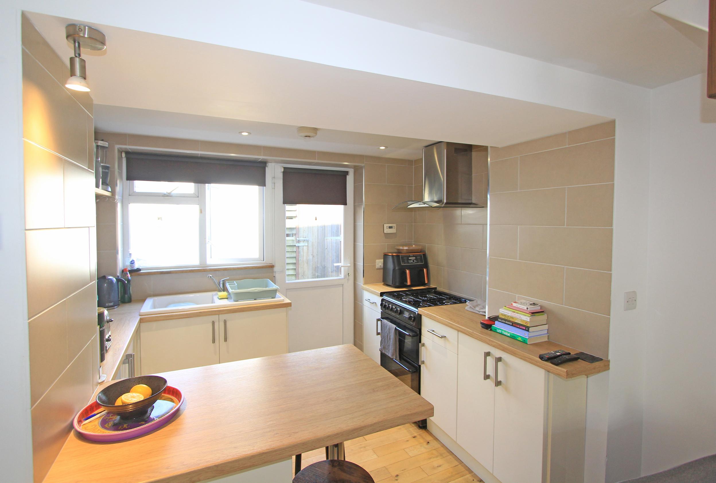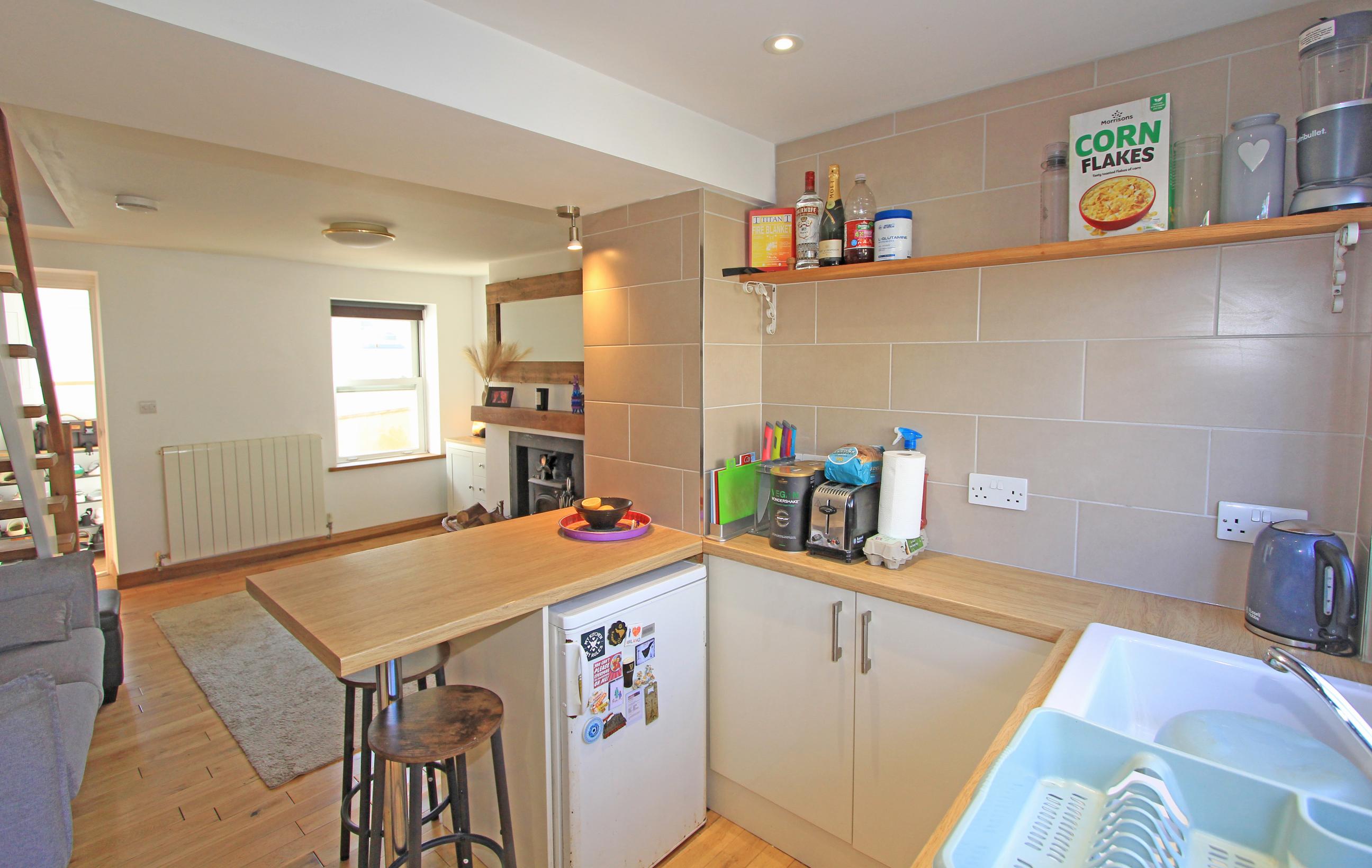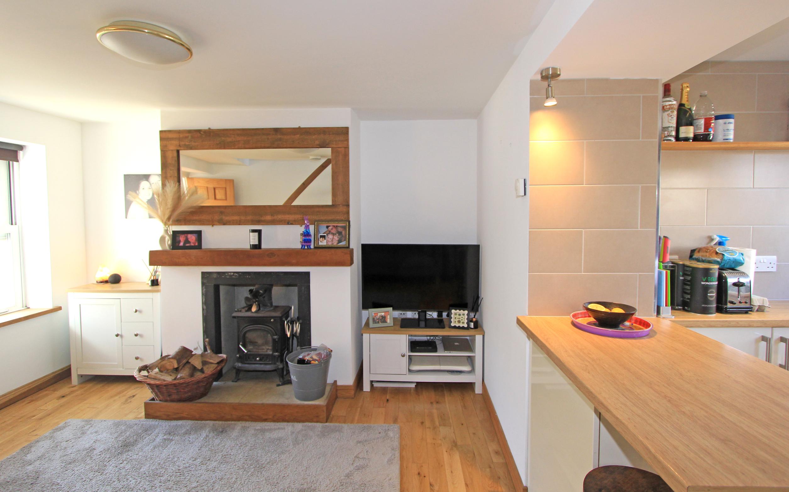 The accommodation begins with an entrance porch leading into an open-plan living room, featuring a wood-burning stove, the adjoining kitchen provides direct access to the rear yard.
