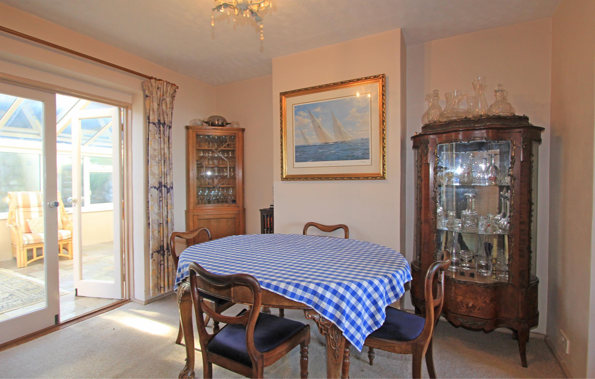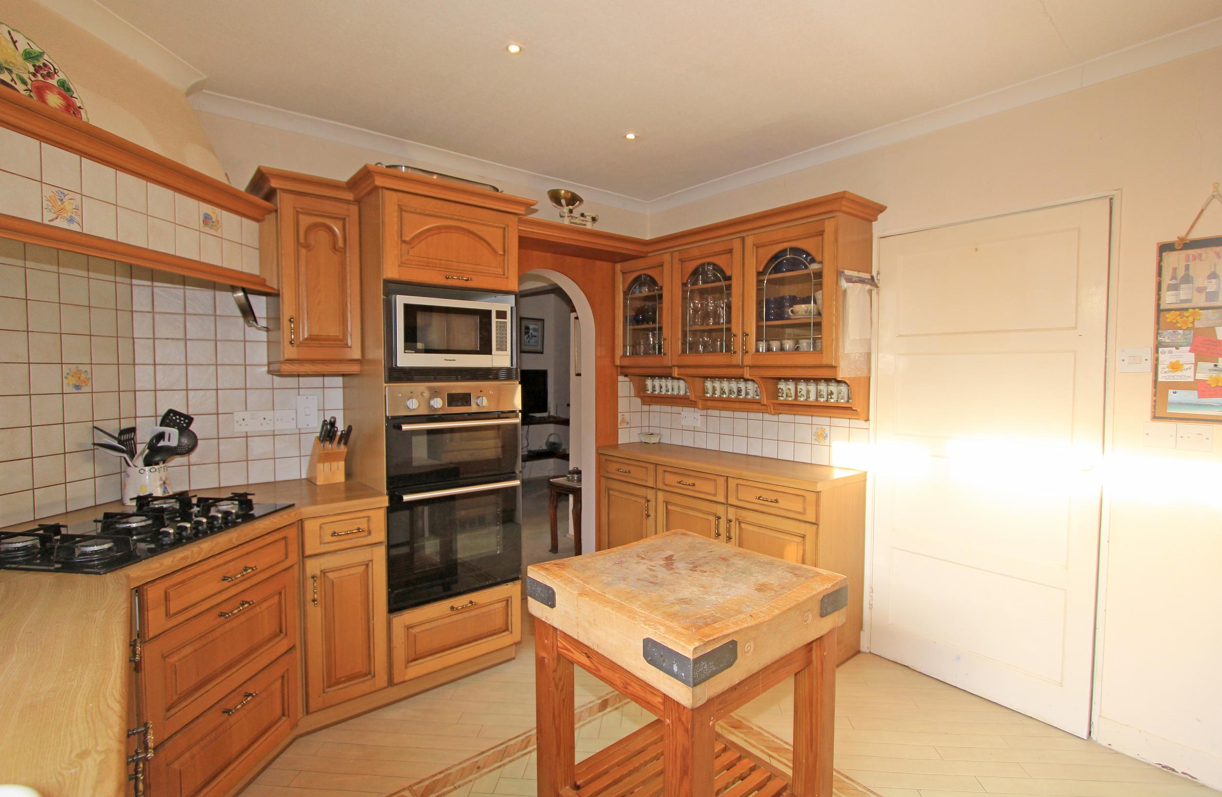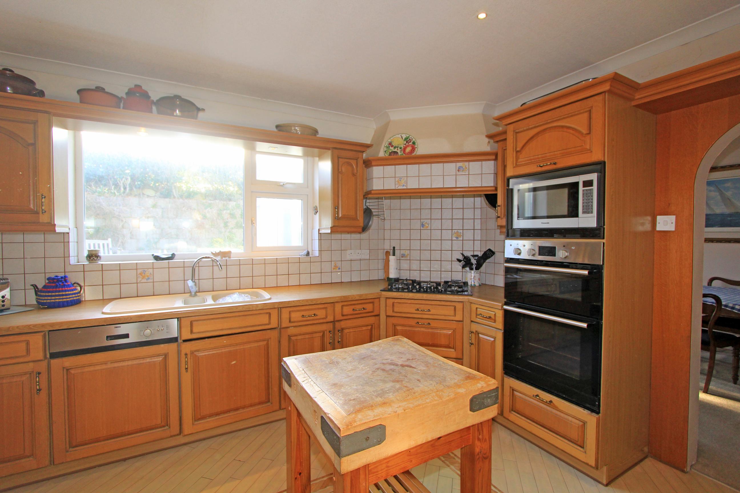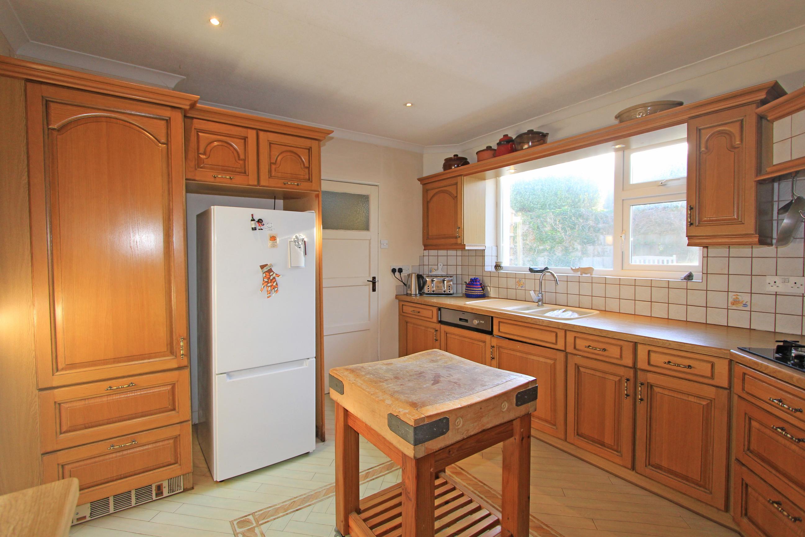 Inside, an entrance porch opens into the hallway, leading to the living room where a large picture window frames the coastal outlook. An arched opening flows through to the dining room and onward into the fitted kitchen. A practical utility room, complete with an additional shower room and a side entrance.