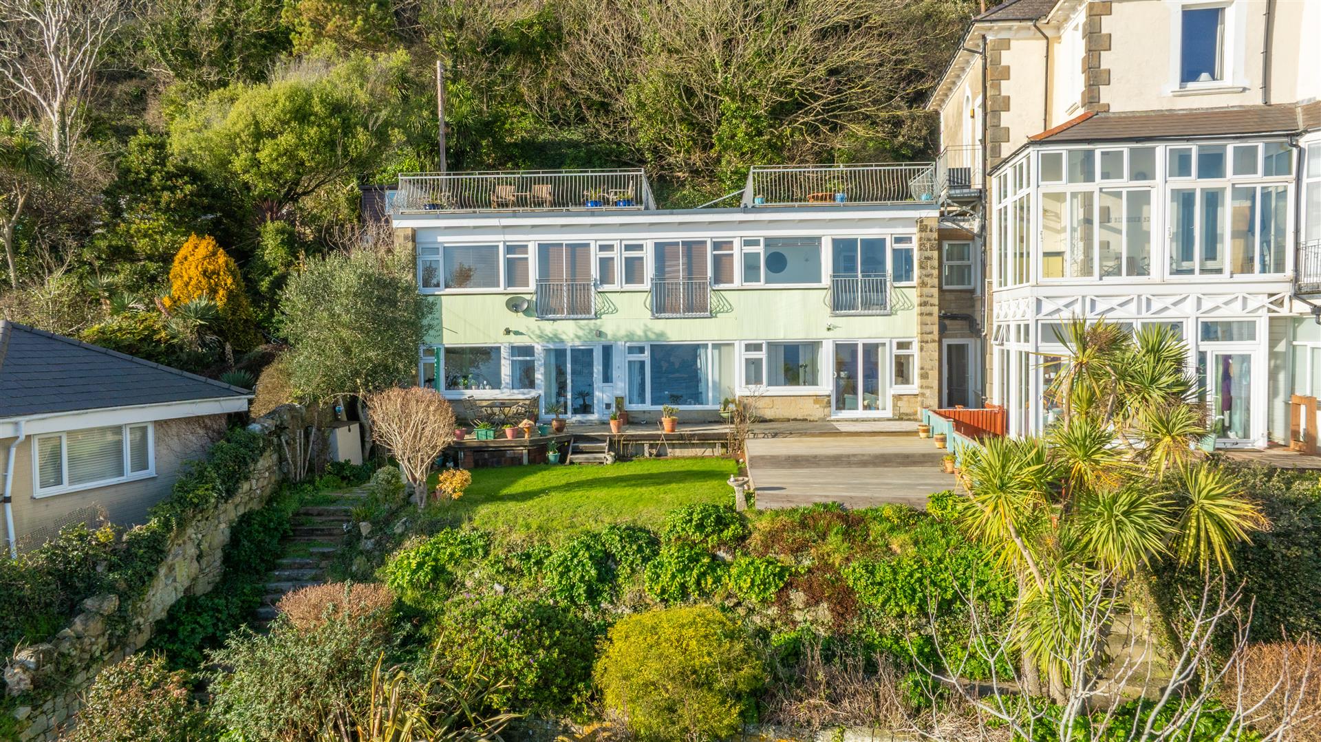 Apartment 2 is a ground floor apartment accessed via steps leading down from the communal parking area, through a communal entrance hall. The apartment itself is approached via its private front garden and enjoys beautiful sea views from its principal rooms.
