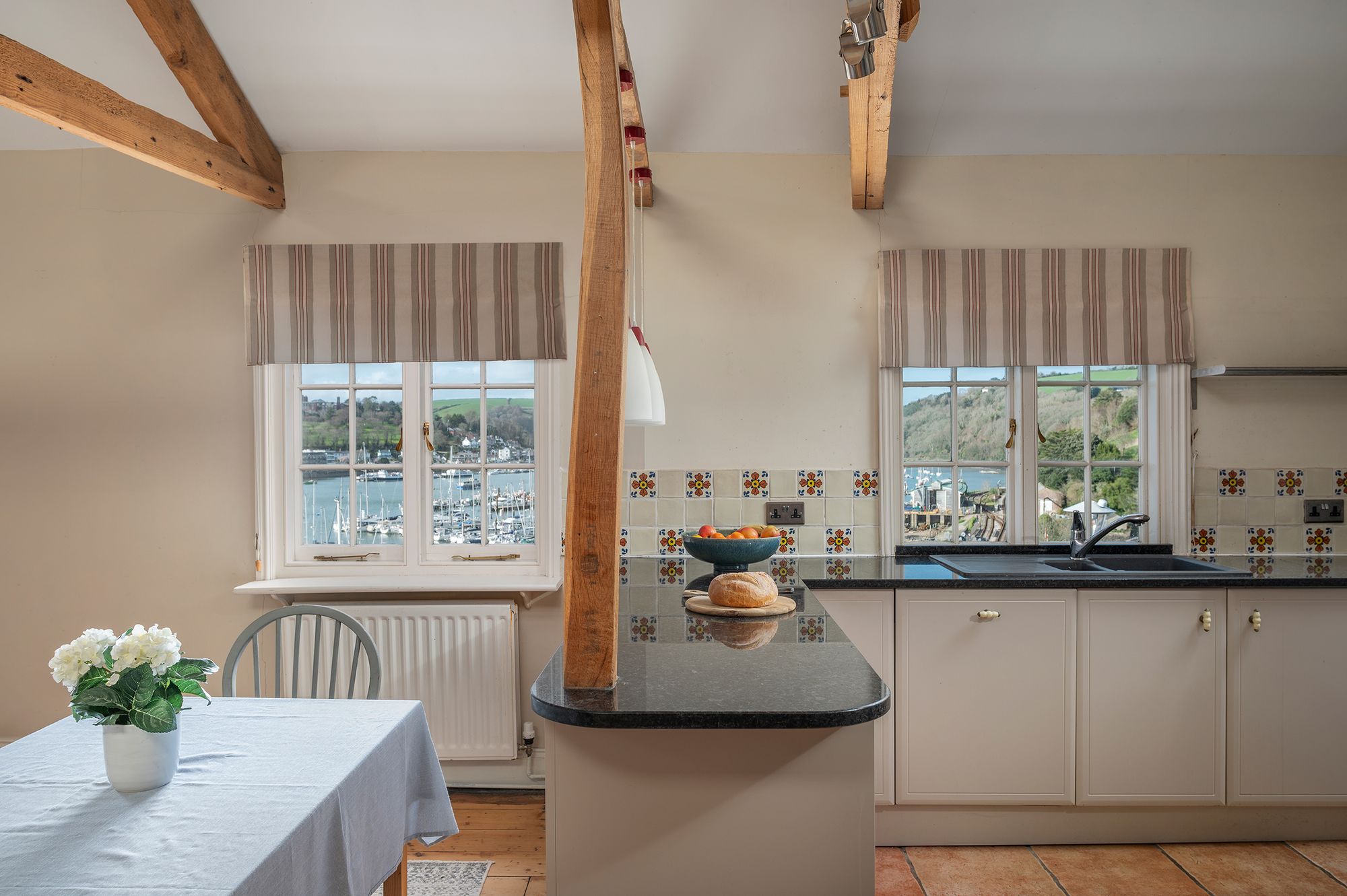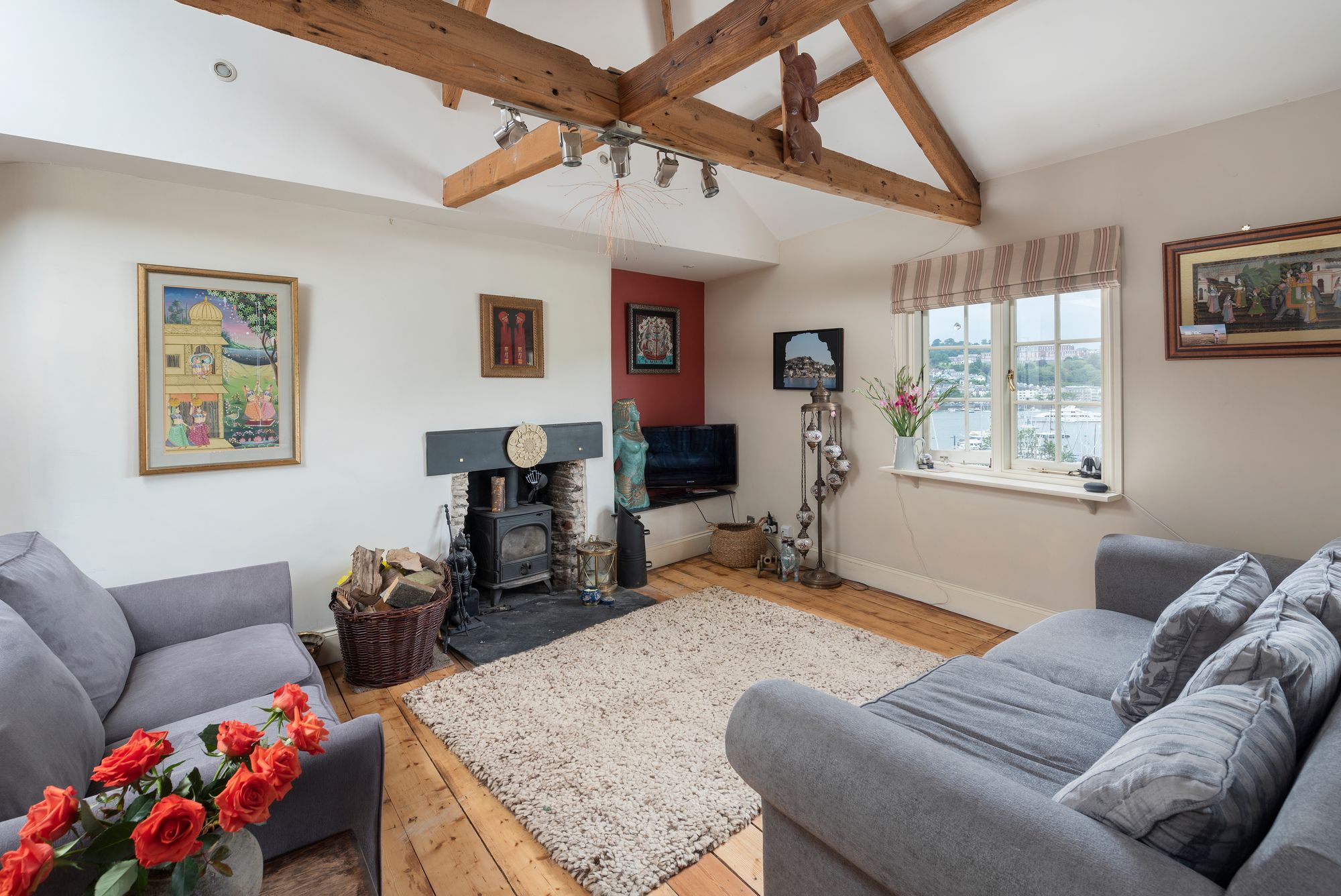 The exposed beams lend a certain charm and ambience to the Open Plan Kitchen/Dining & Living Room that overlooks Darthaven Marina and upriver and across to Dartmouth town. There is also a very handy and spacious Utility Room with access to the Parking & Garden on this level.