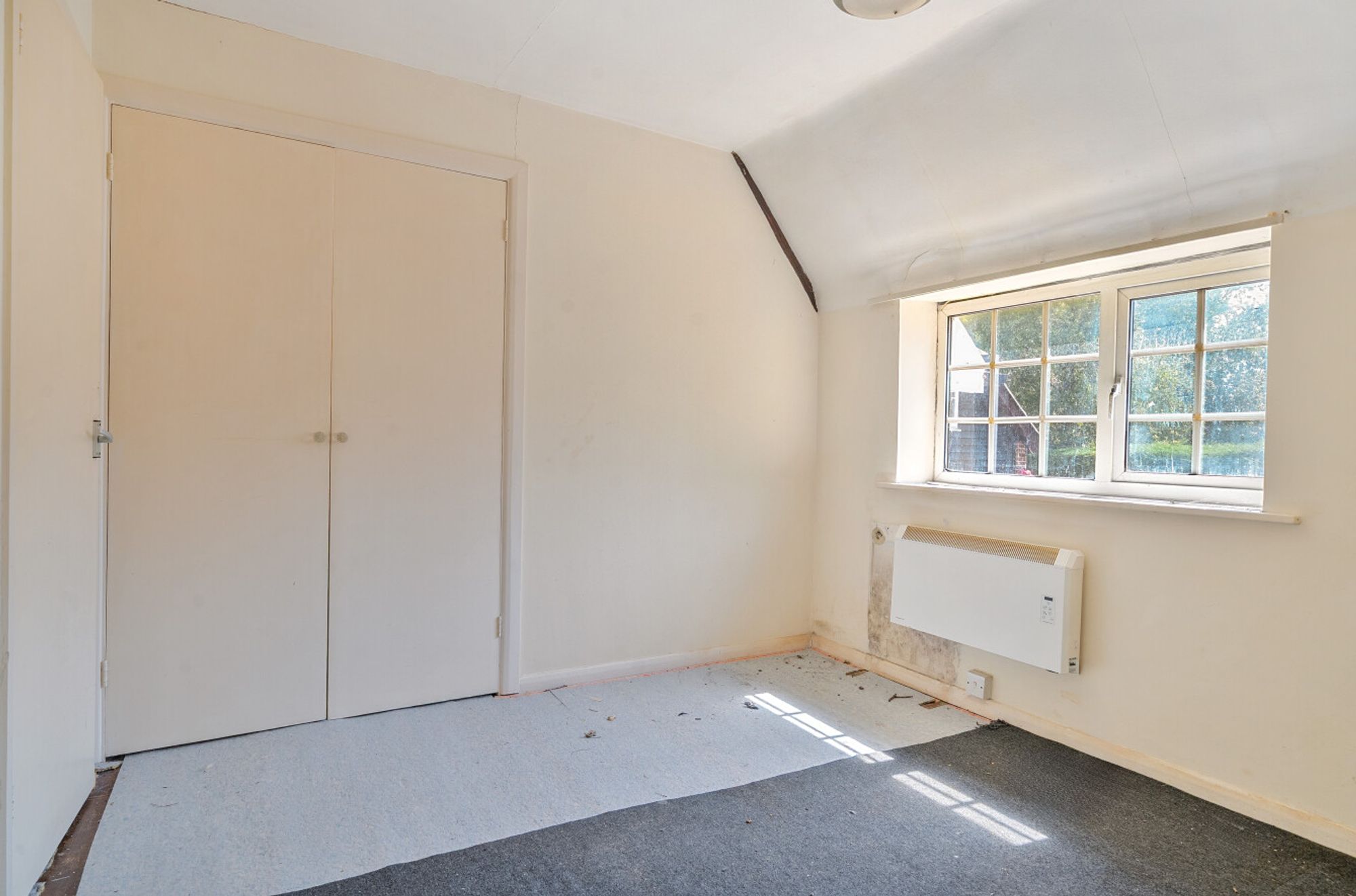 Upstairs, there are two well-proportioned bedrooms, both with built-in wardrobes. The principal bedroom enjoys a large picture window, a striking feature that adds to the sense of light and space. A family bathroom is also located on the first floor, well-positioned to serve both bedrooms.
