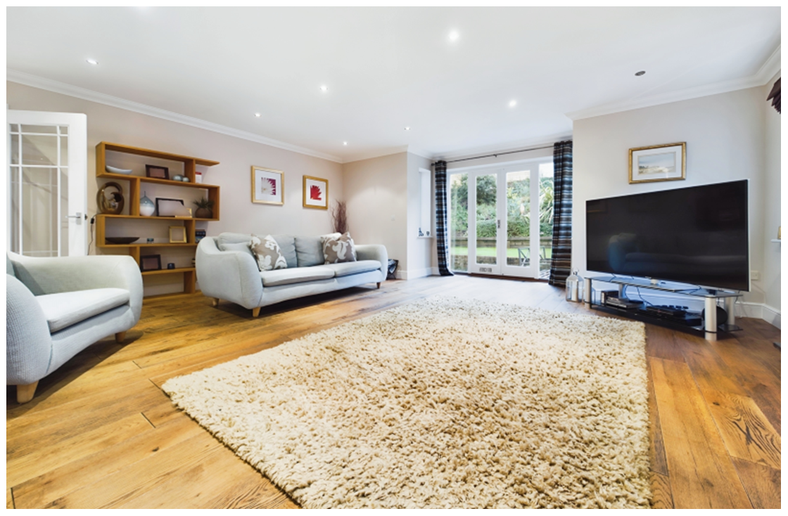 Living Room - The well-proportioned living room benefits from windows to three aspects. French doors provide views over the rear garden and open onto the patio. This generously sized room can also accommodate further dining space. The focal point of the room has to be the log burner, which enhances the cosy ambience and makes this the perfect space for relaxing at the end of a busy day.