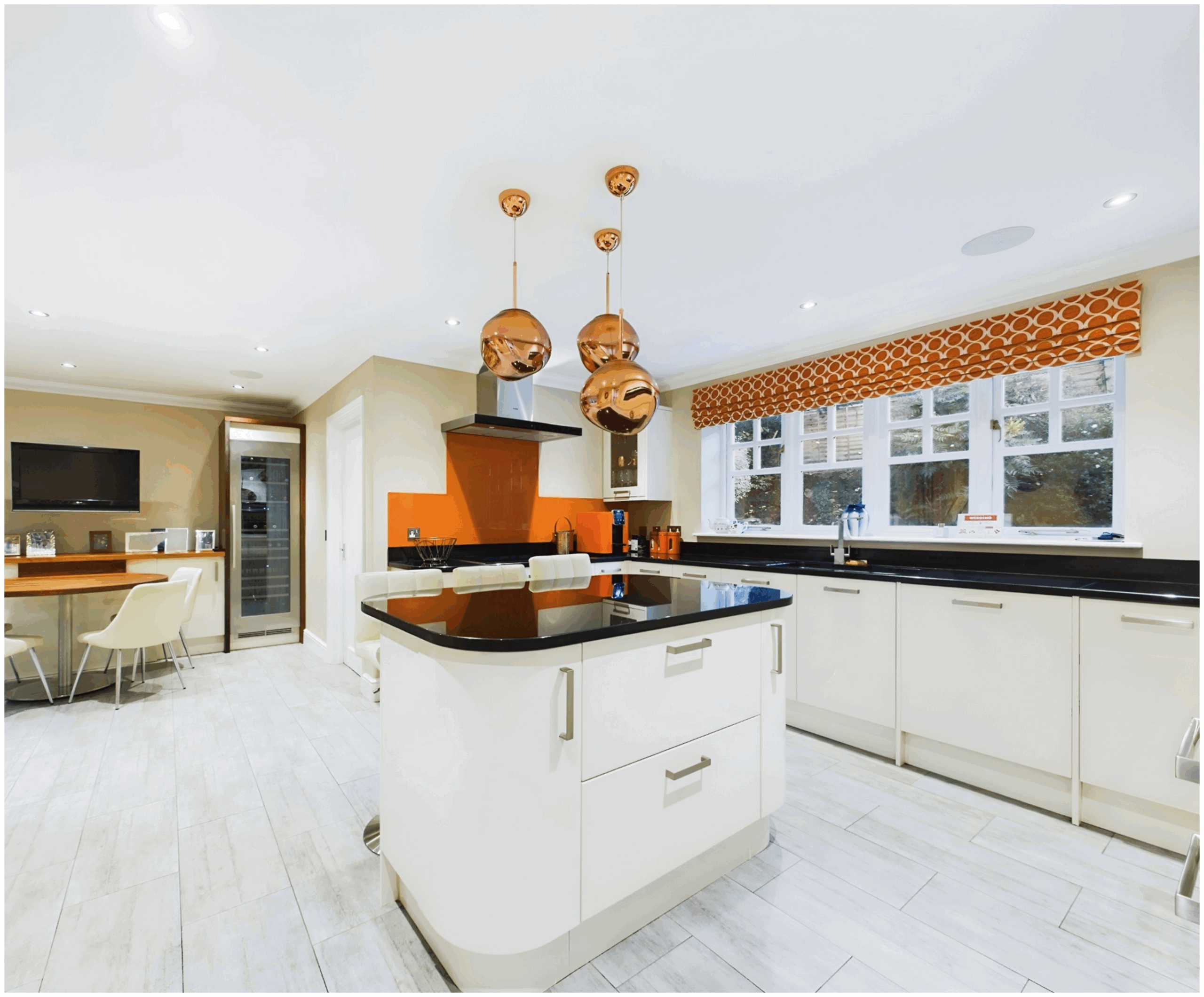 Kitchen/Diner - The modern fitted kitchen will prove popular with culinary enthusiasts and comprises of a comprehensive range of matching wall and floor mounted units with a granite worksurface over. It boasts the added benefit of a kitchen island, perfect for informal dining. Integrated appliances include dual multifunction Siemens electric ovens, a Siemens induction hob with extractor hood, a full size fridge, two under counter Smeg freezers and a Bosch dishwasher. There are extra units to one wall providing additional storage. This space also benefits from a built in walnut table and the addition of a fantastic full length integrated wine fridge. For entertaining, the kitchen includes four integrated ceiling speakers with Bluetooth connectivity.