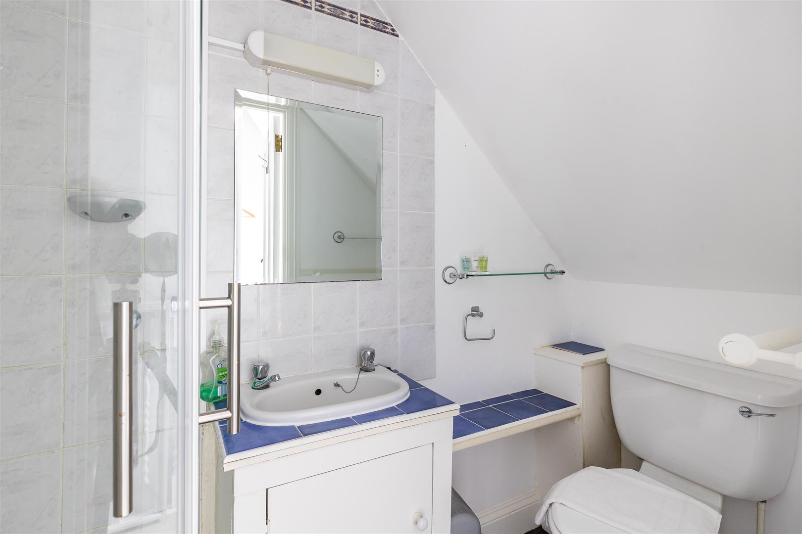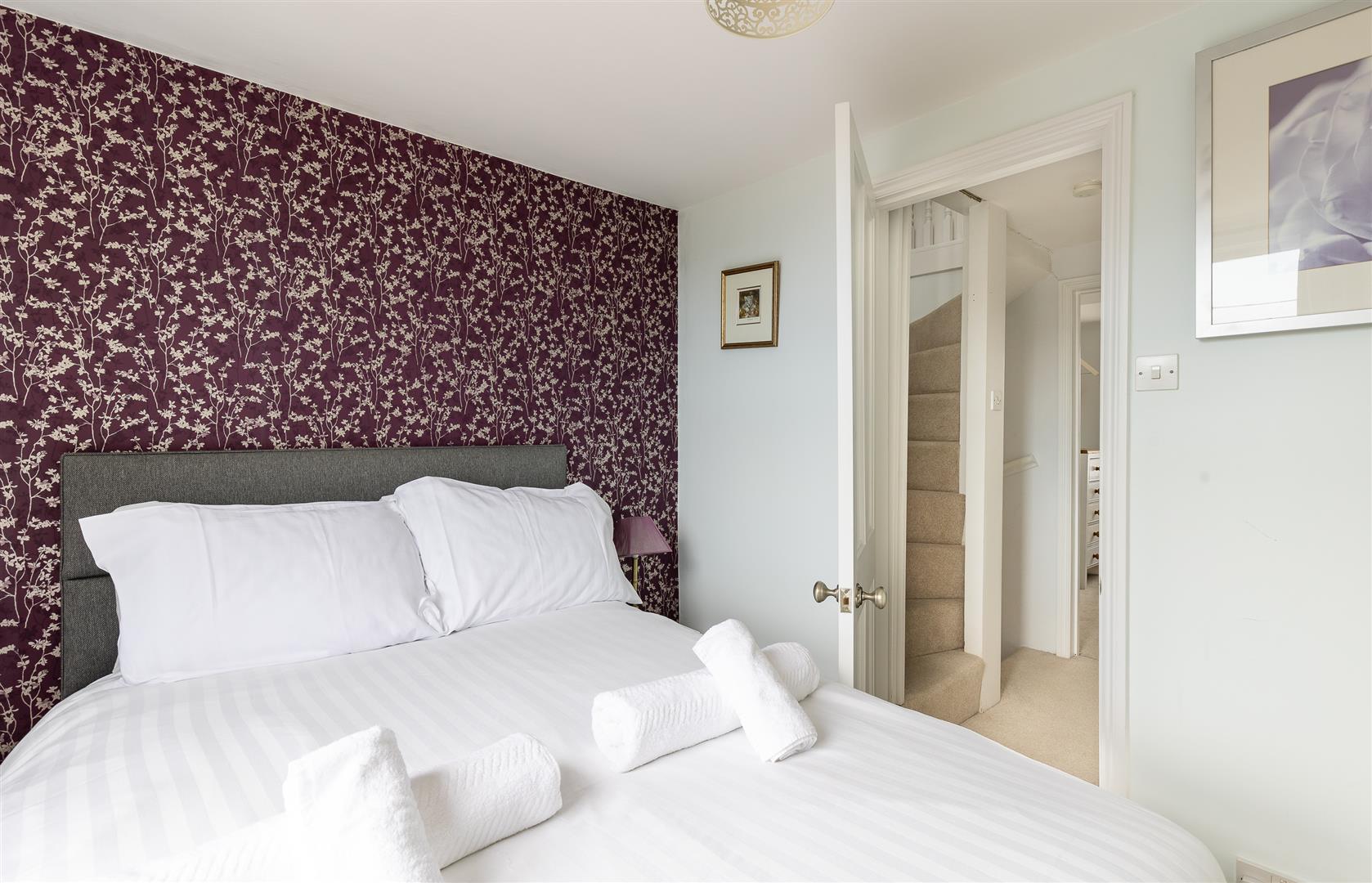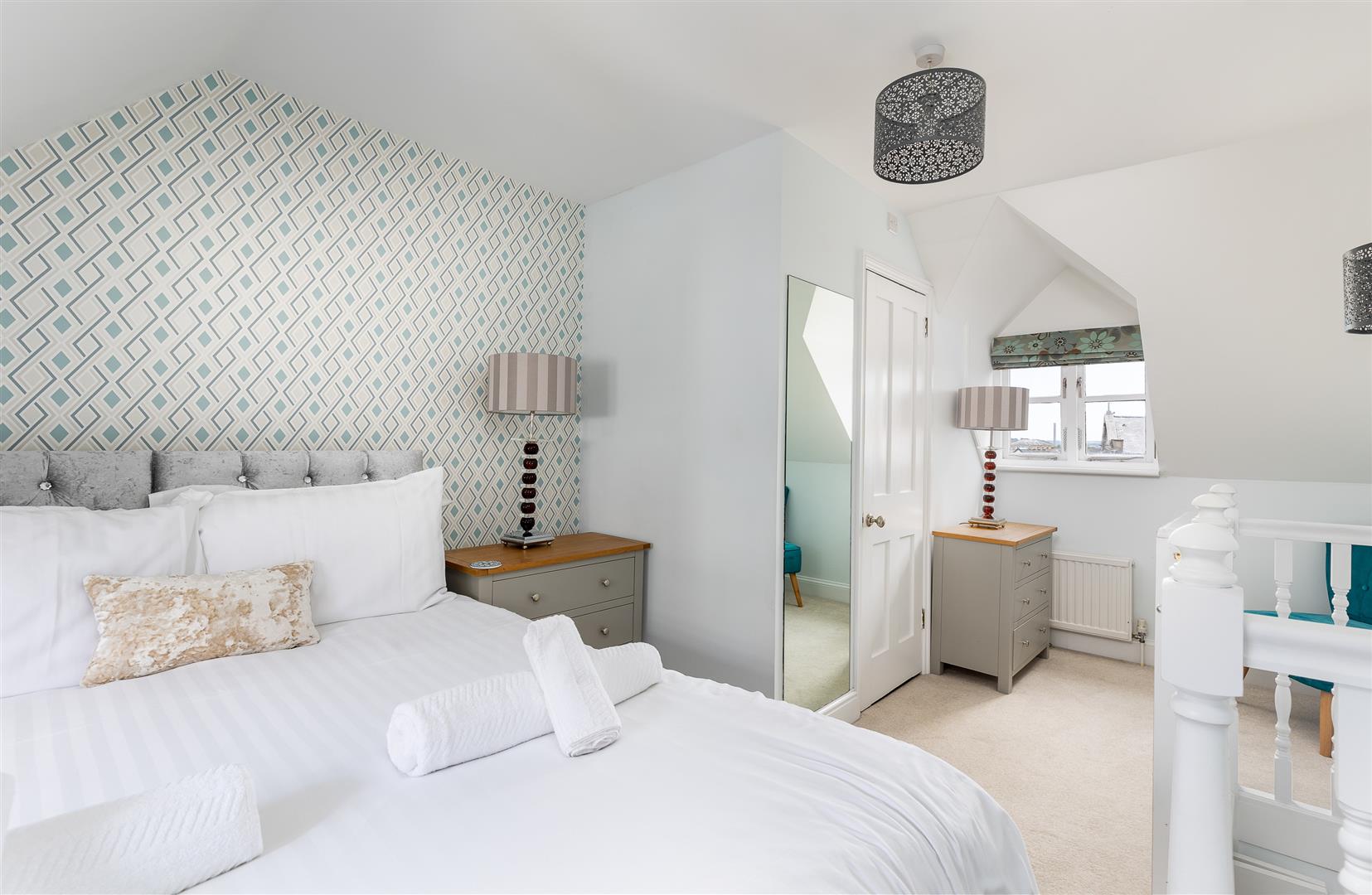 A large double bedroom with double aspect windows, one out towards the harbour with sea views, and an ensuite shower room.