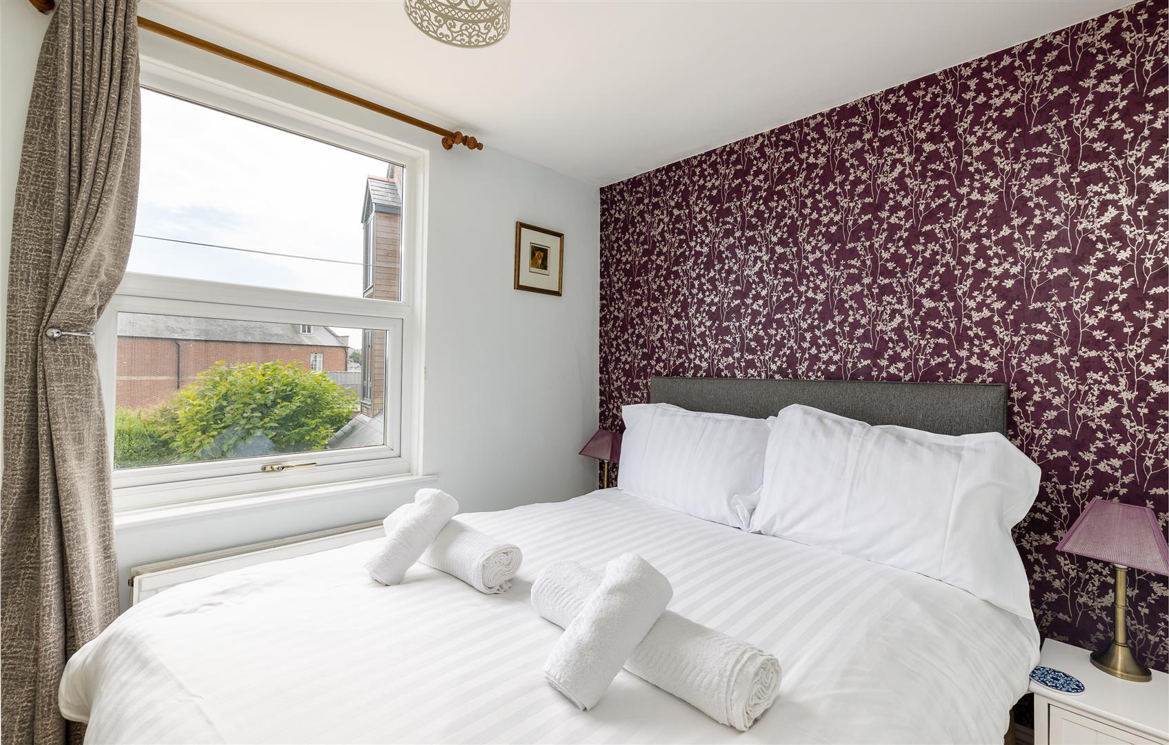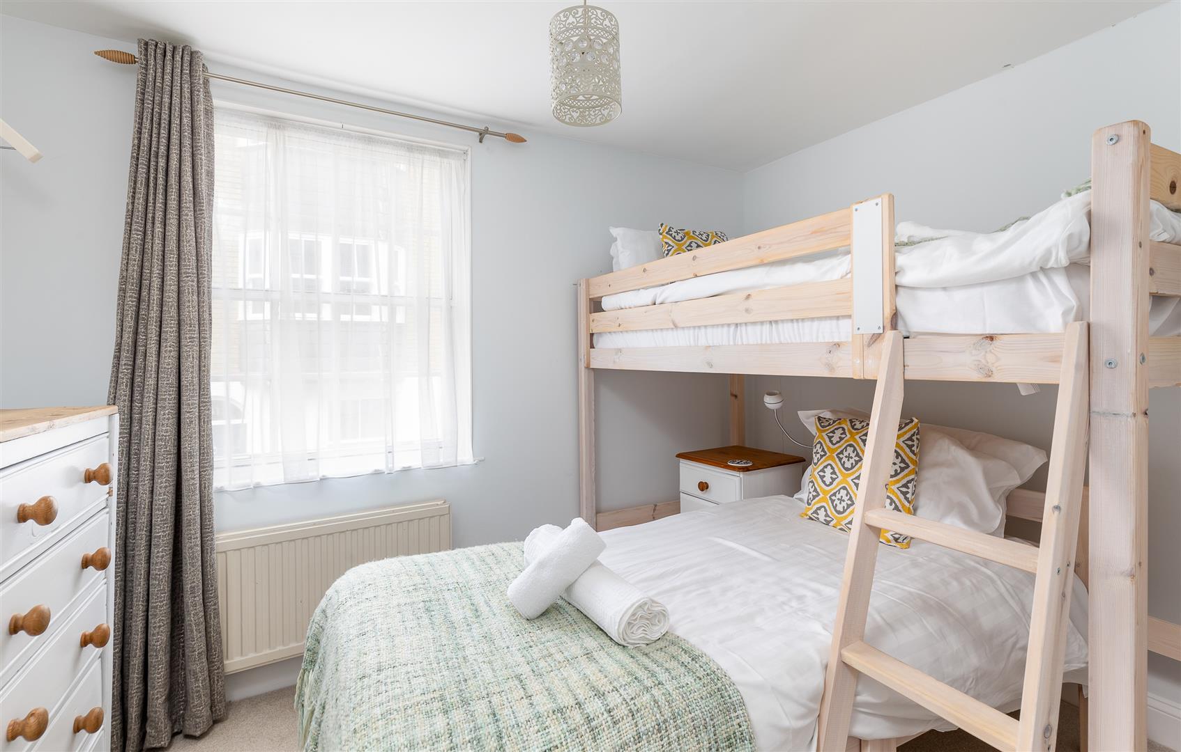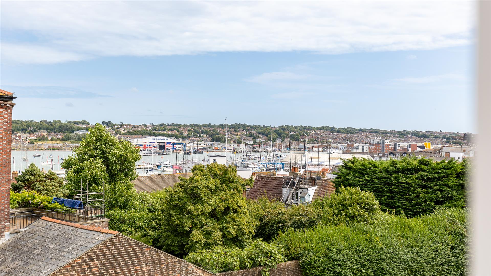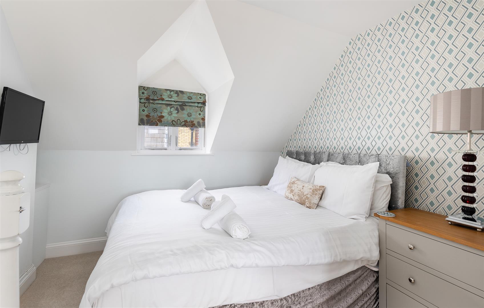 A large double bedroom with double aspect windows, one out towards the harbour with sea views, and an ensuite shower room.