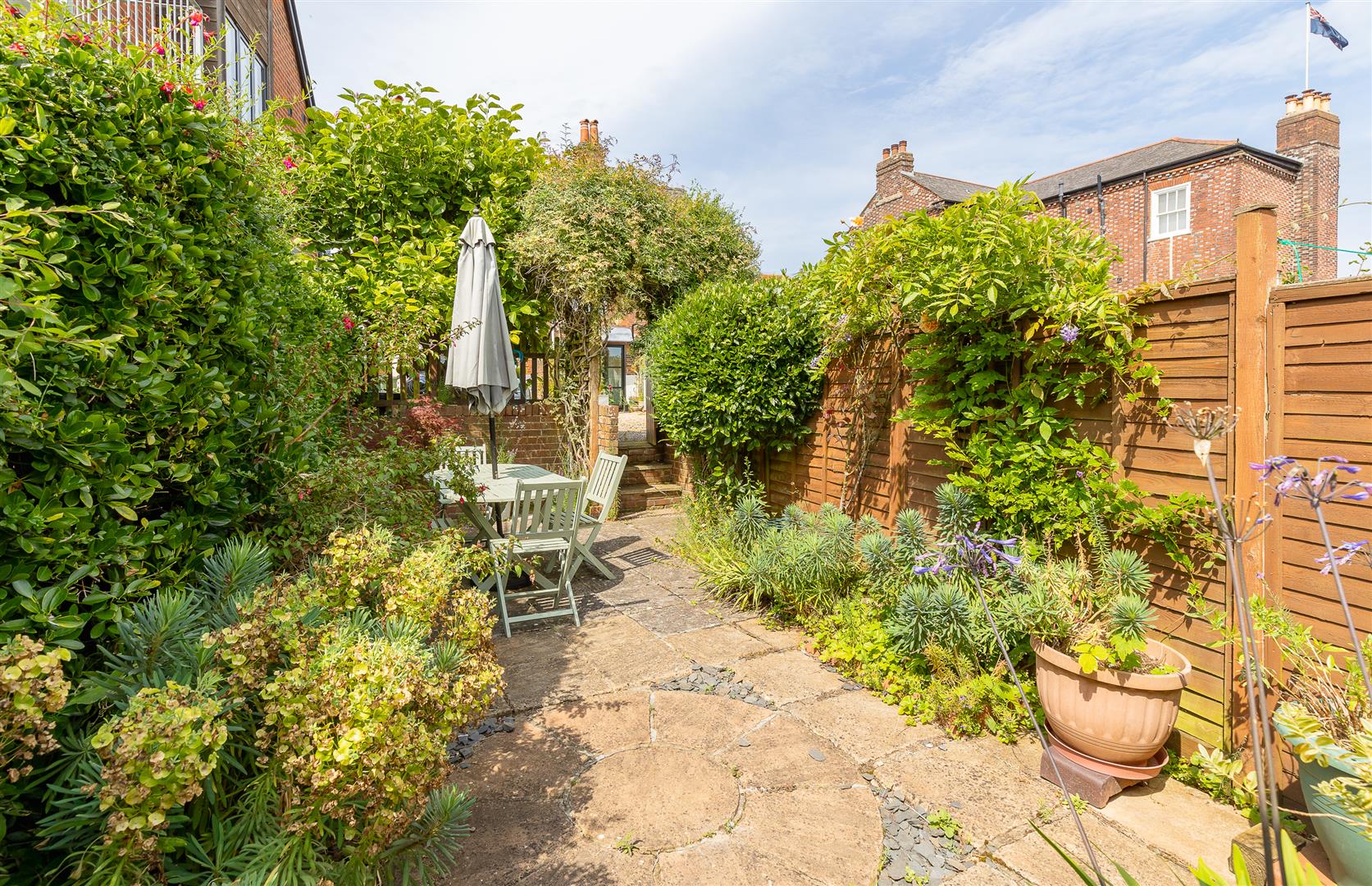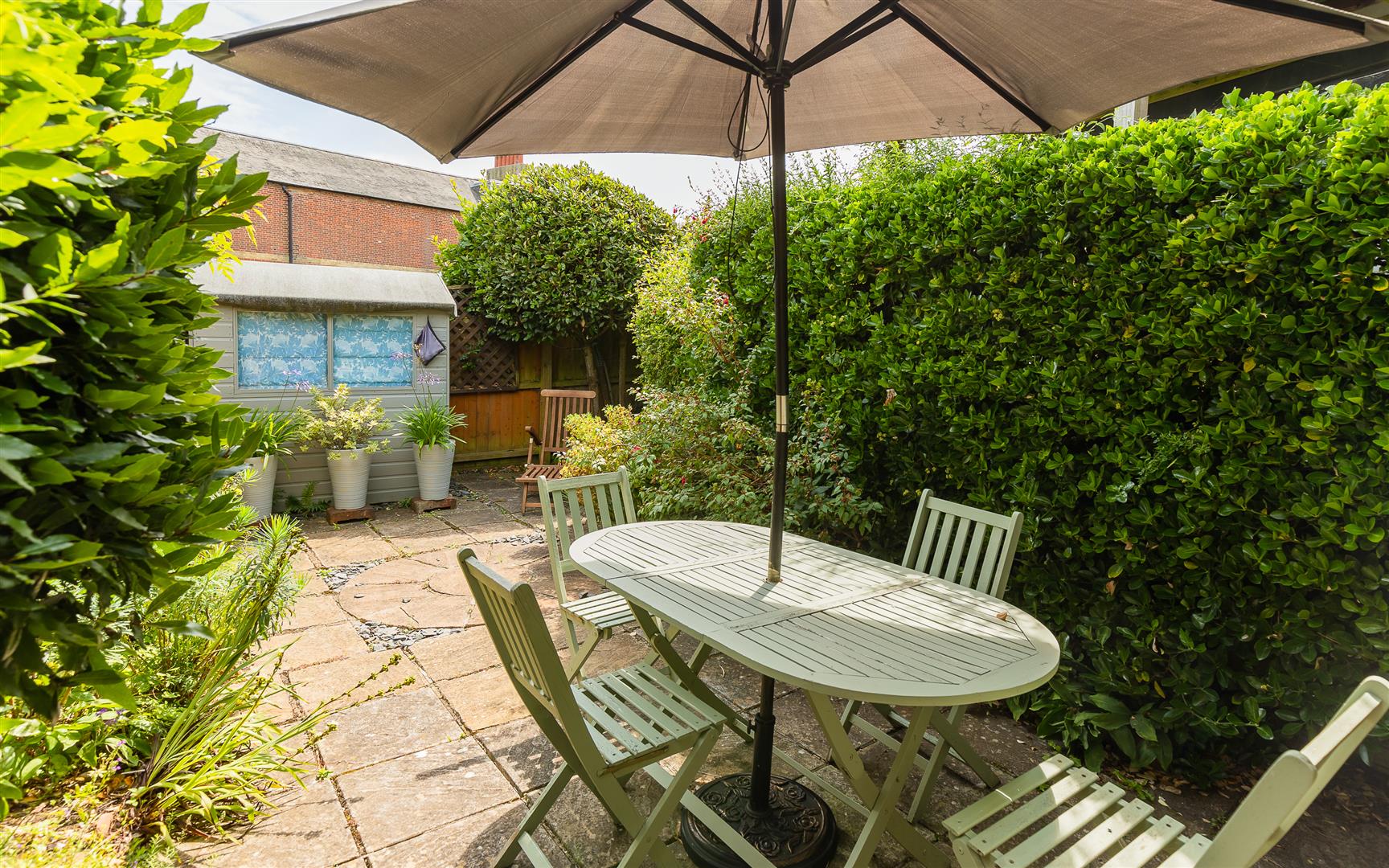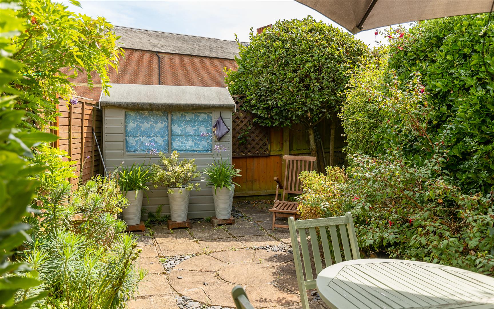 Adjacent to the rear of the property is a small paved sitting area with climbing roses and shrubs. Across from the property, in the gated courtyard, is the allocated parking space and a gate to the private sunken garden. Within this peaceful area is a good sized paved outside space with mature trees and plants around the perimetre and a garden store at one end, a lovely area to relax and enjoy this garden oasis.