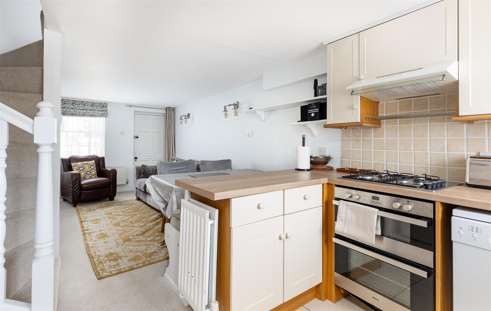 The kitchen looks out to the courtyard and has space and plumbing for a slimline dishwasher and washing machine, fridge/freezer as well as having an oven and four ring gas hob. Access to the rear of the property is through the quaint stable door.
