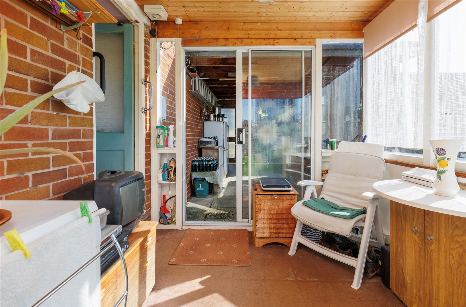 The front of the property is neat and tidy with a simple lawn, steps down to the entrance door and off road parking that leads to an area previously used as a garage and is now a car port and has direct access to the rear garden.
