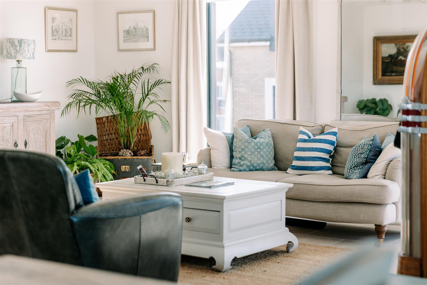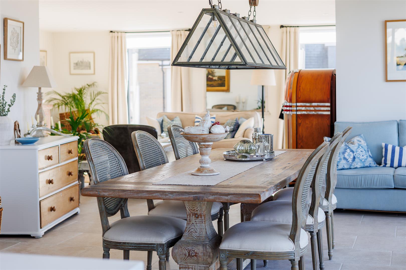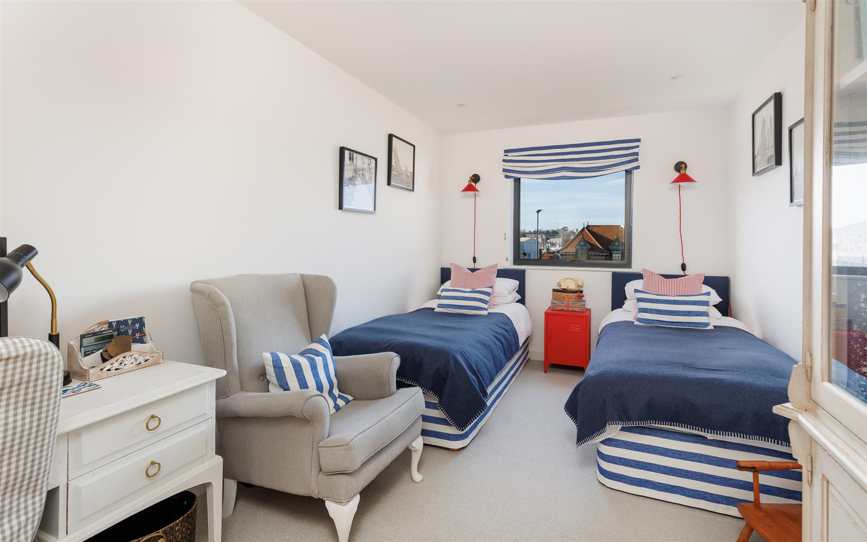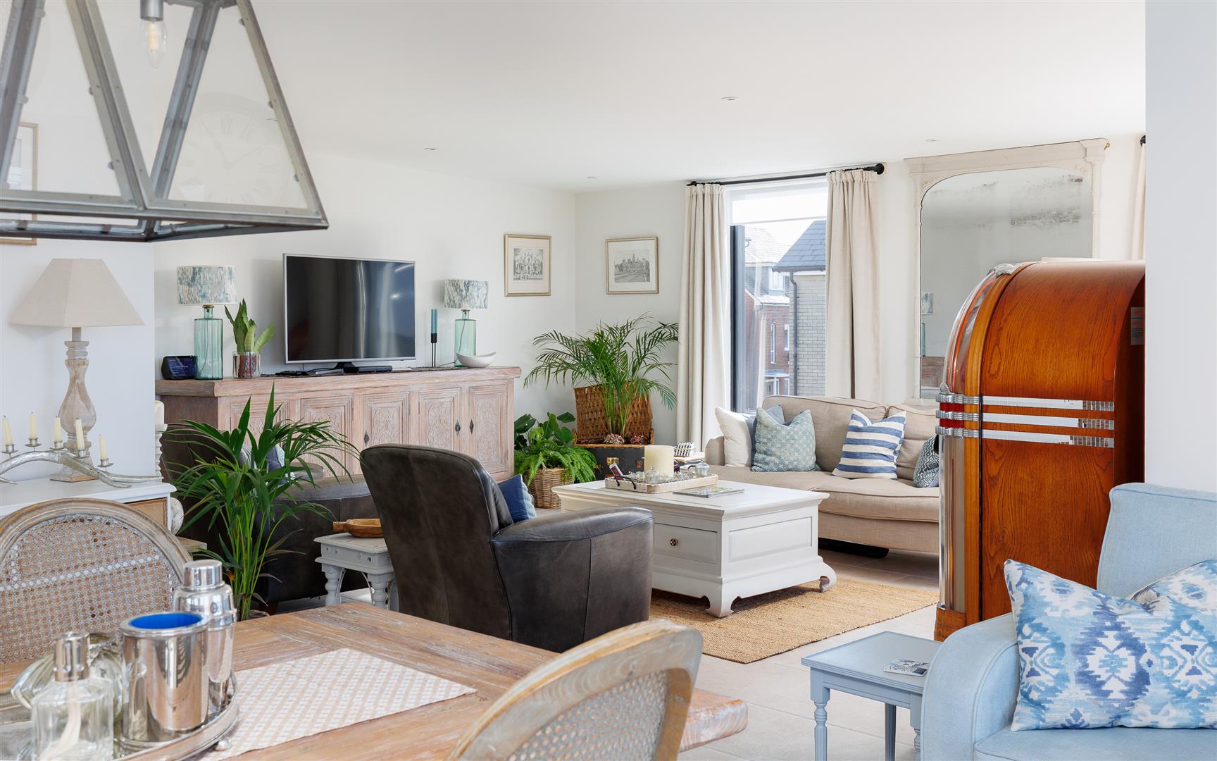 This pristine home is bright and airy throughout and has been thoughtfully created to maximise the views and use of space with plenty of storage and easy maintenance. It is decorated in soft neutral tones with light stone tiles flowing through the hallway and the open plan first floor, both with underfloor heating.