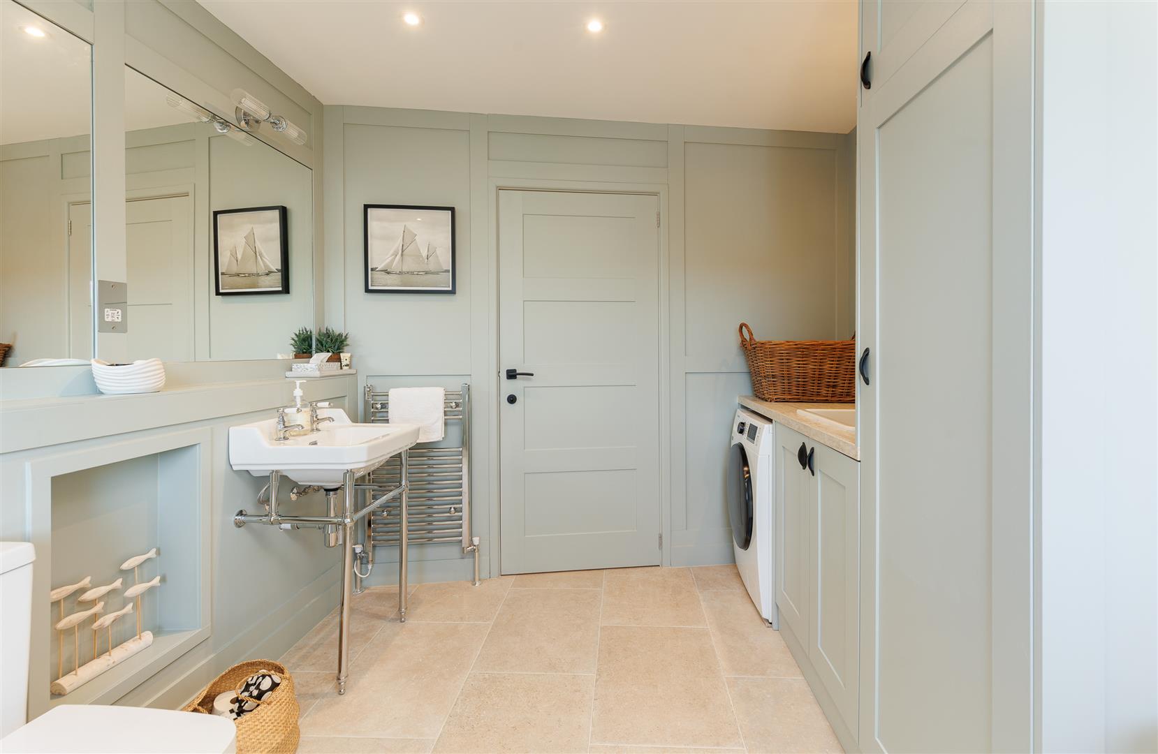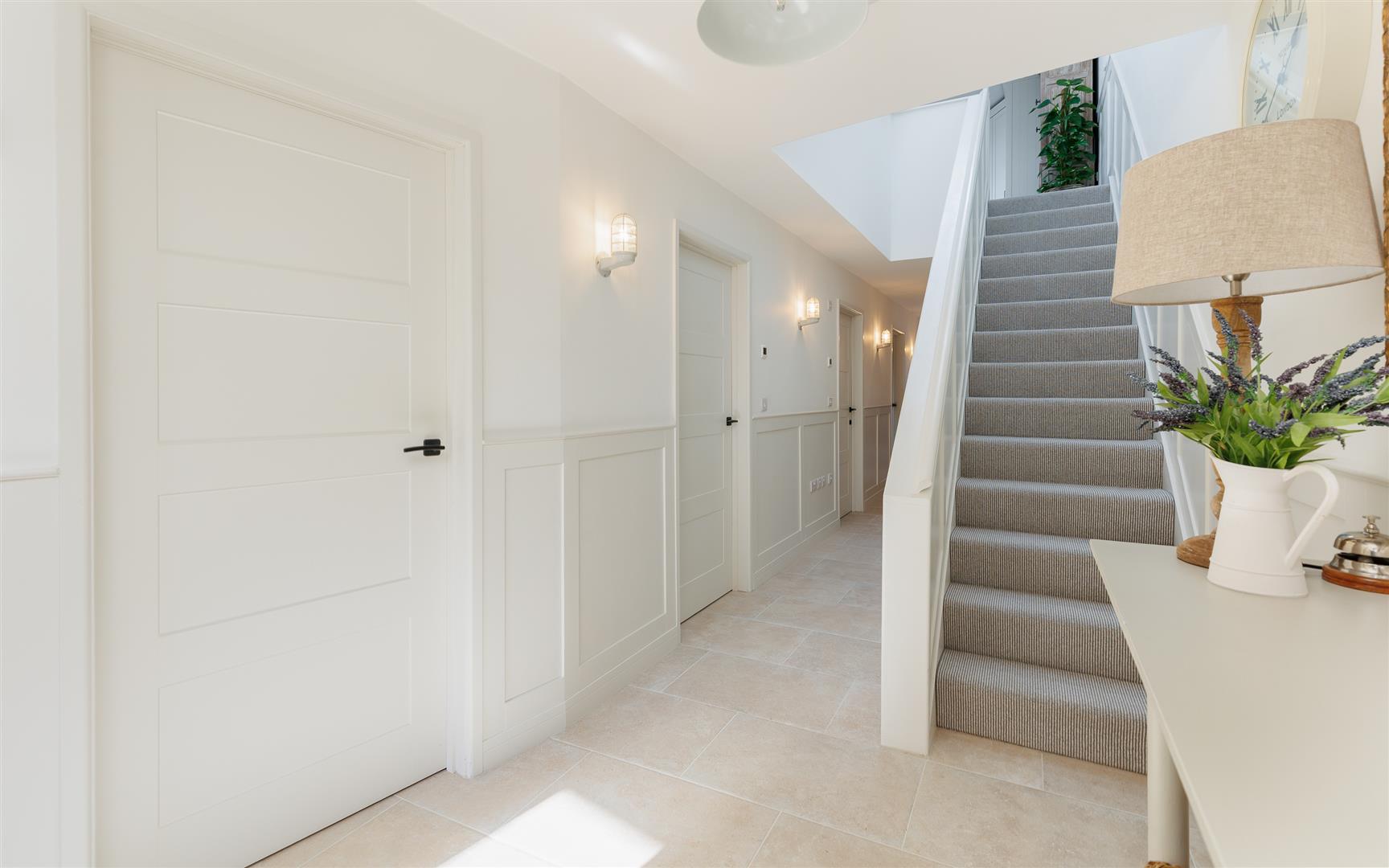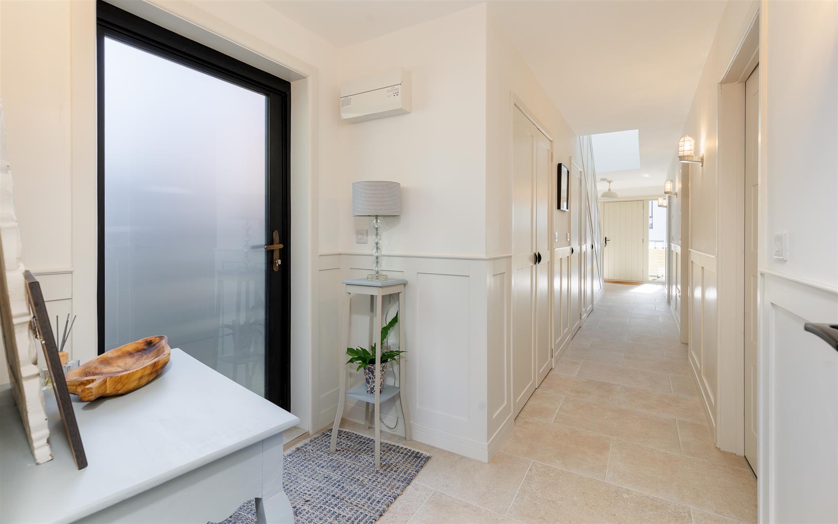 Entering into a spacious hallway that leads off to four bedrooms, a family bathroom including utility area and a modern staircase leading up to the first floor. Beneath here is understairs storage, an airing cupboard and a plant room containing the Gloworm gas boiler, underfloor heating manifolds and 400 litre Kingspan water cylinder.