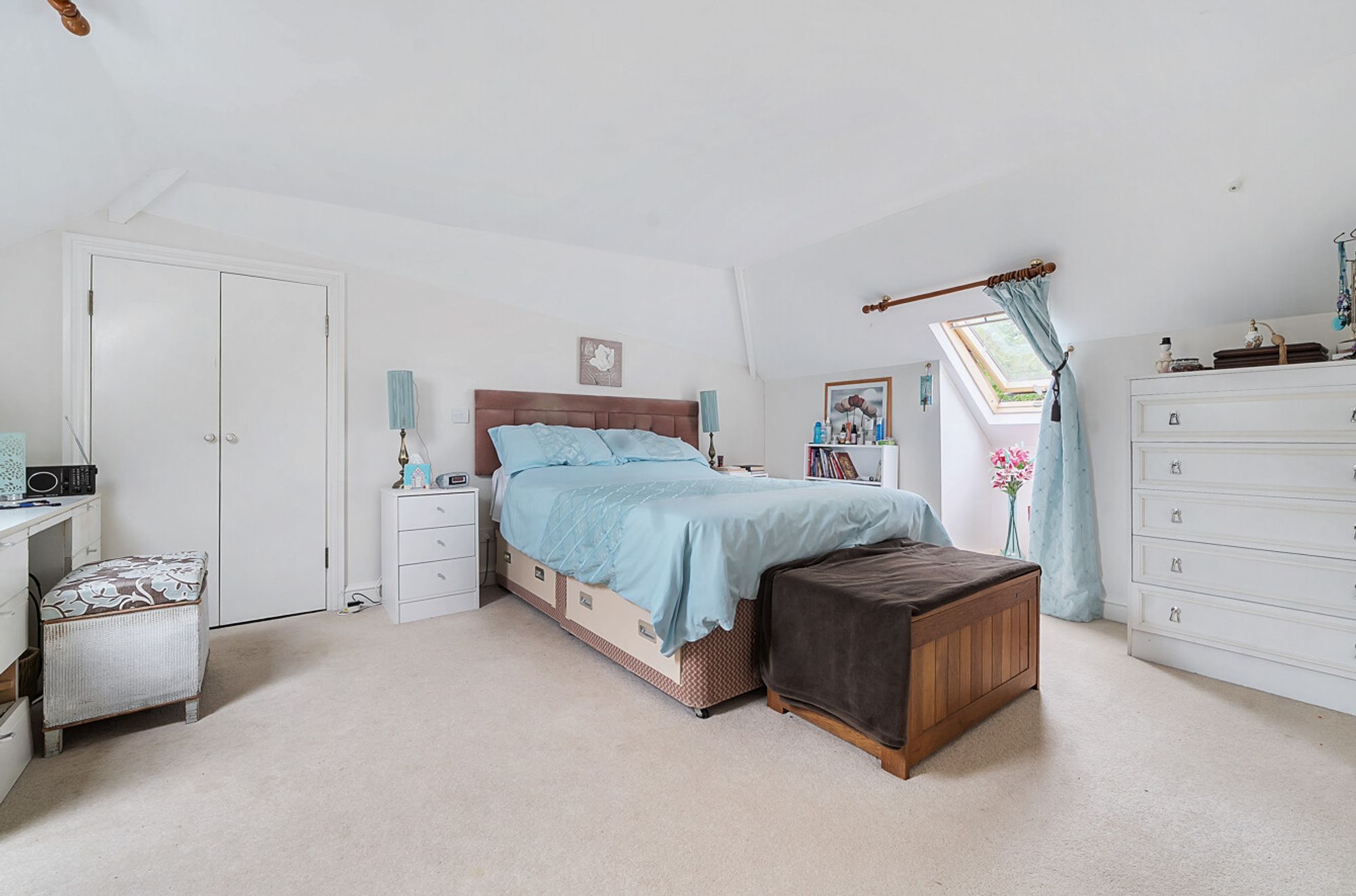 Upstairs, there are two spacious double bedrooms. The principal bedroom benefits from an en suite bathroom and built-in wardrobes, while the second bedroom also offers generous proportions along with eaves storage and a further double wardrobe on the landing. A recently updated family bathroom completes the first floor.