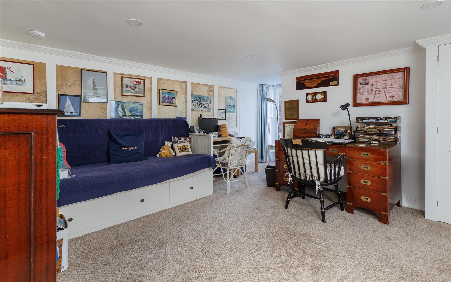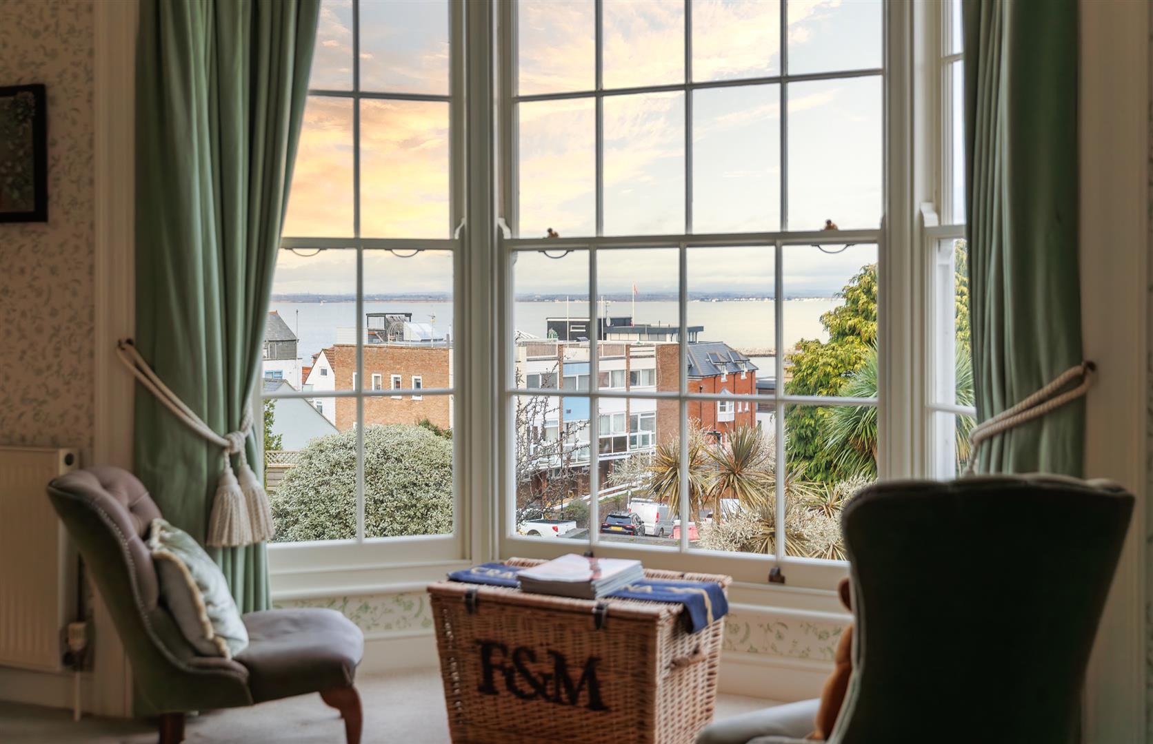 From the moment you step inside, the house exudes period splendor, with exquisite original details including mahogany bannisters, ornate staircase panelling and beautifully preserved old ship timbers that adorn the ceiling beams on the lower floors. Thoughtfully restored, yet sensitively updated, the property blends the old with the new, creating an elegant atmosphere. Notable improvements include the coal hole transformed into a wine cellar—a perfect nod to the property's storied past. The impressive high ceilings provide a sense of airy grandeur, with every corner echoing the history of the house. The sea-facing rooms become even more impressive as you ascend the building, set over five-storeys, with each floor presenting increasingly magnificent views of the Solent.