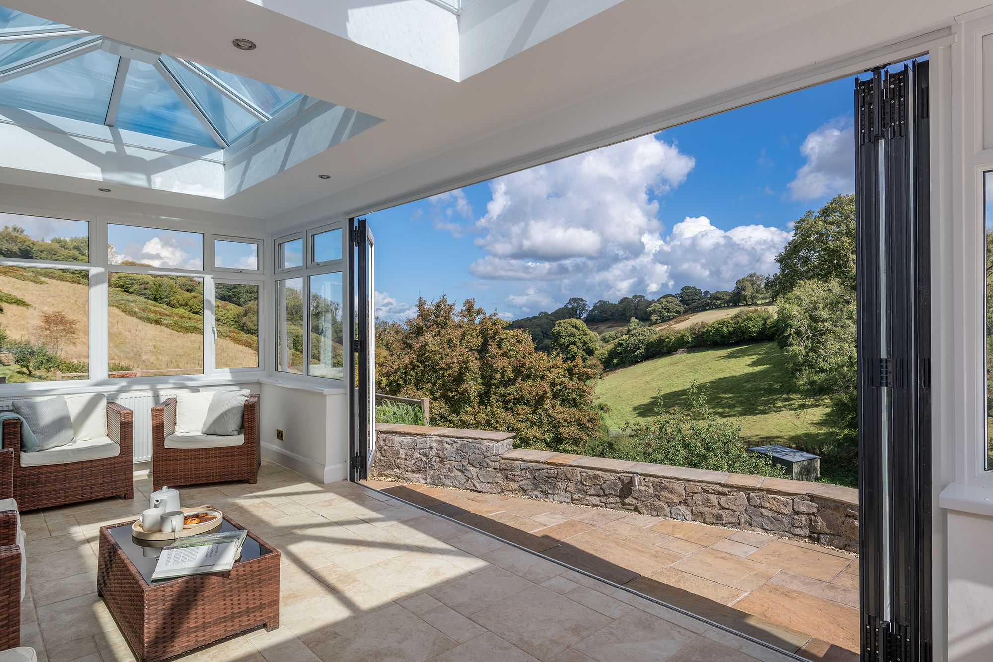 Beyond, the light-filled Sunroom links House and Garden, with bi-fold doors that open fully to the Terrace and the expansive views beyond. This connection to the outdoors makes it a particularly inviting room throughout the seasons, whether filled with summer air or bathed in low winter light.