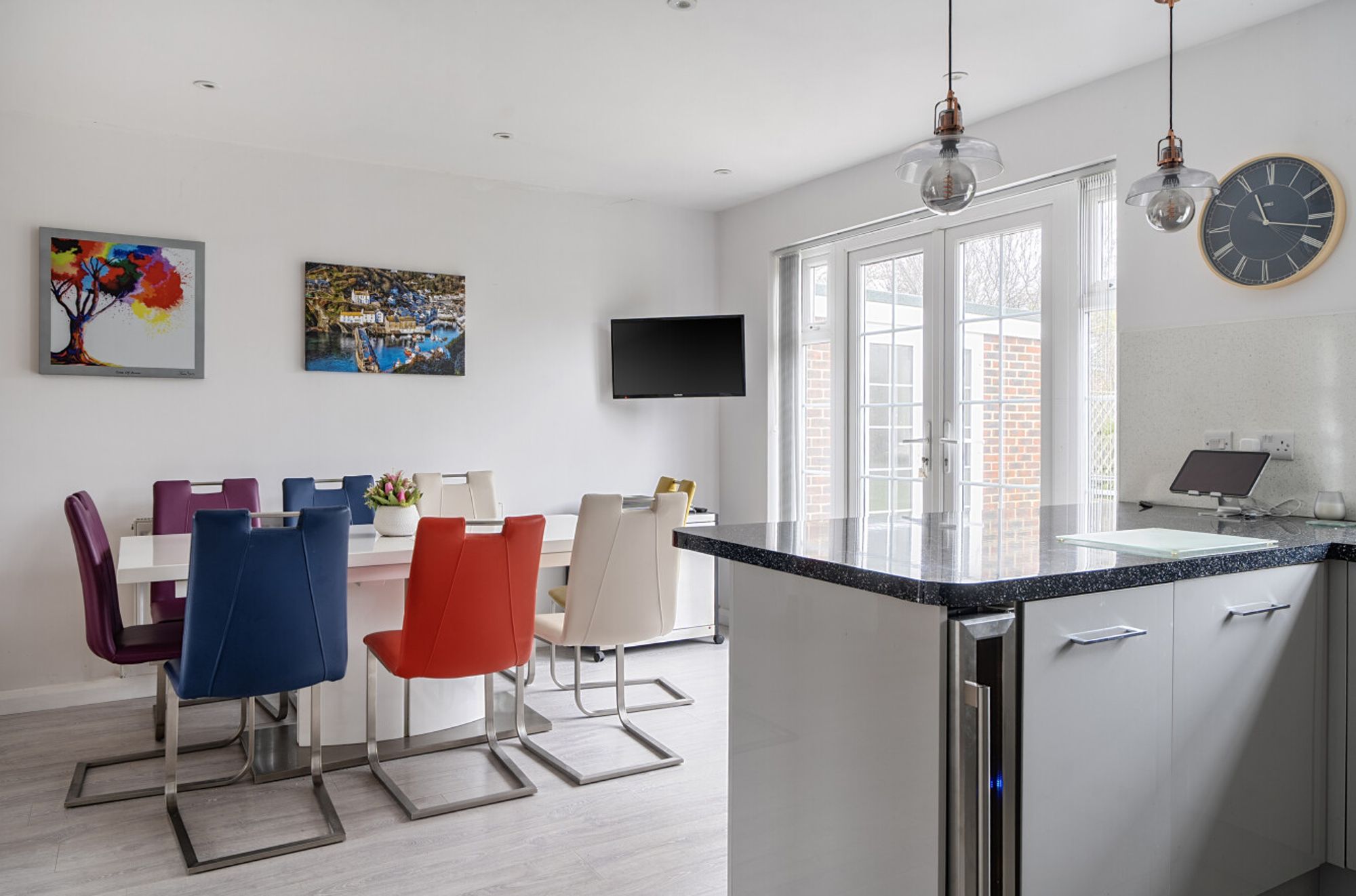 The accommodation briefly comprises, entrance porch and door to welcoming entrance hallway. Dual aspect sitting room with feature fireplace. There is also a snug/ground floor bedroom with patio doors opening onto the rear garden. The contemporary refitted kitchen has integral appliances, electric hob with modern extractor fan with space for dining and patio doors to the rear garden. There are two further bedrooms on the first floor, one with a dressing area and both with en-suite shower rooms.