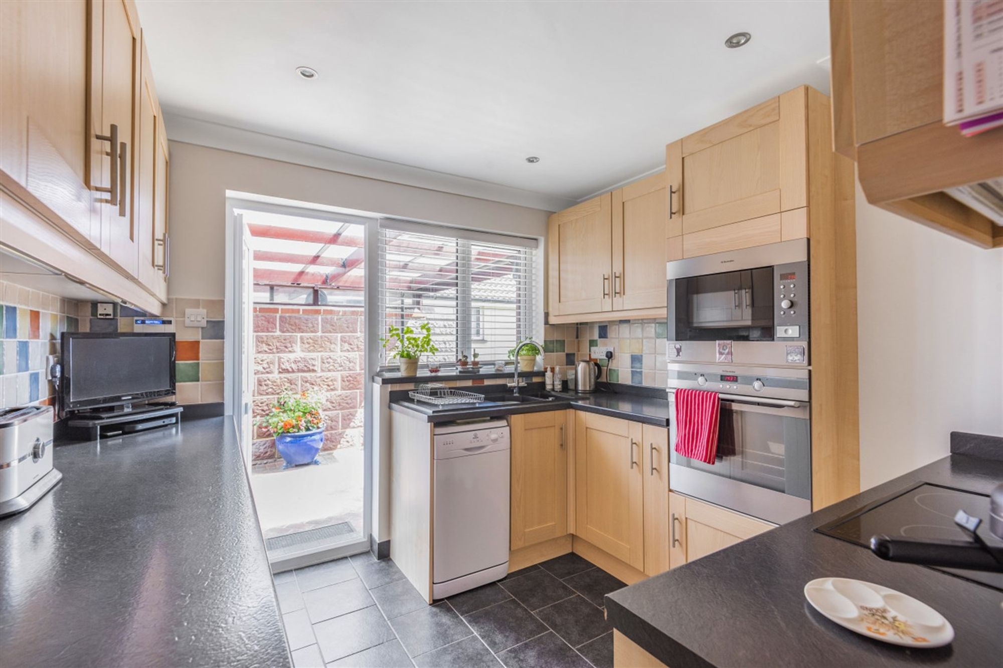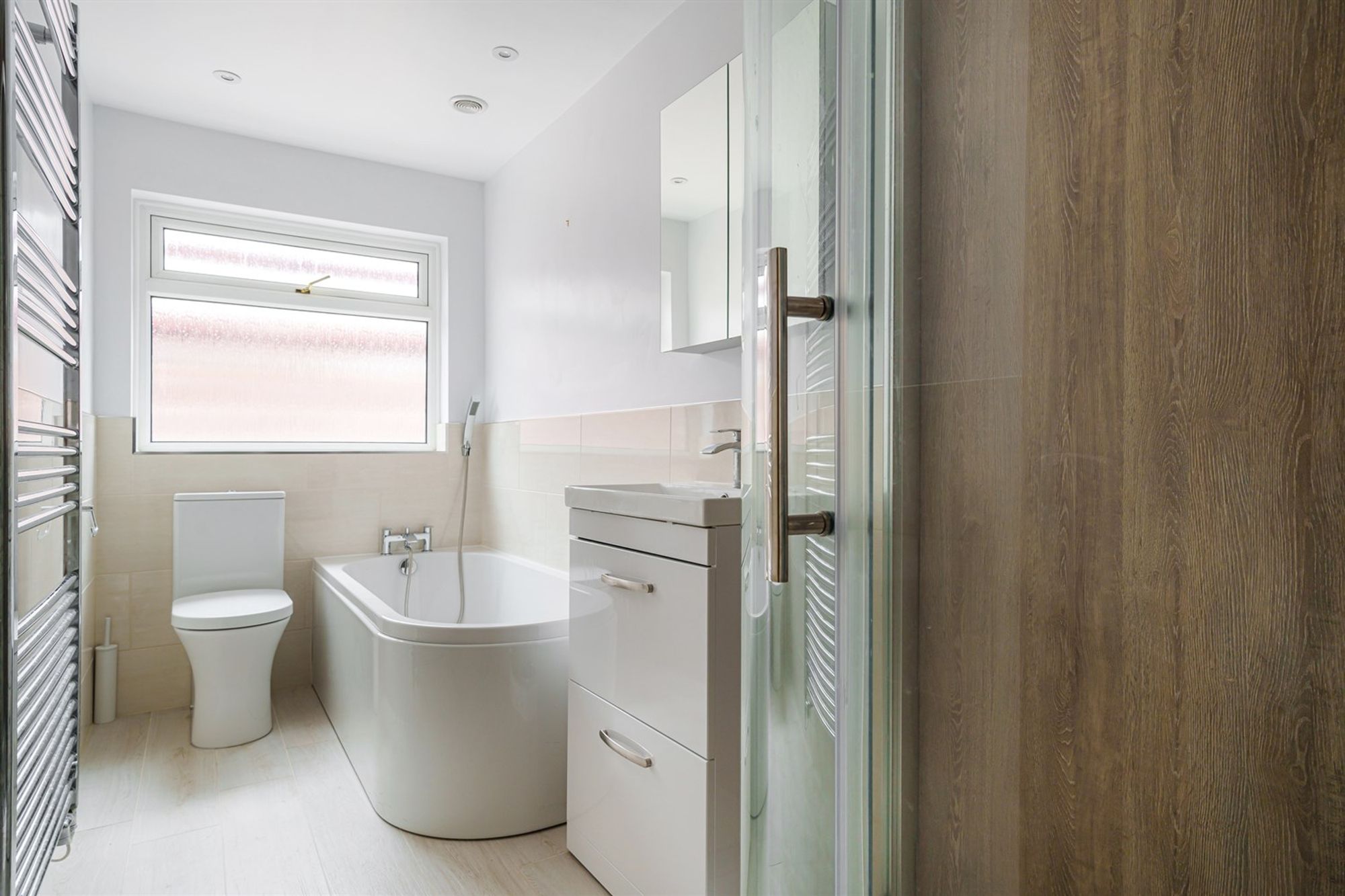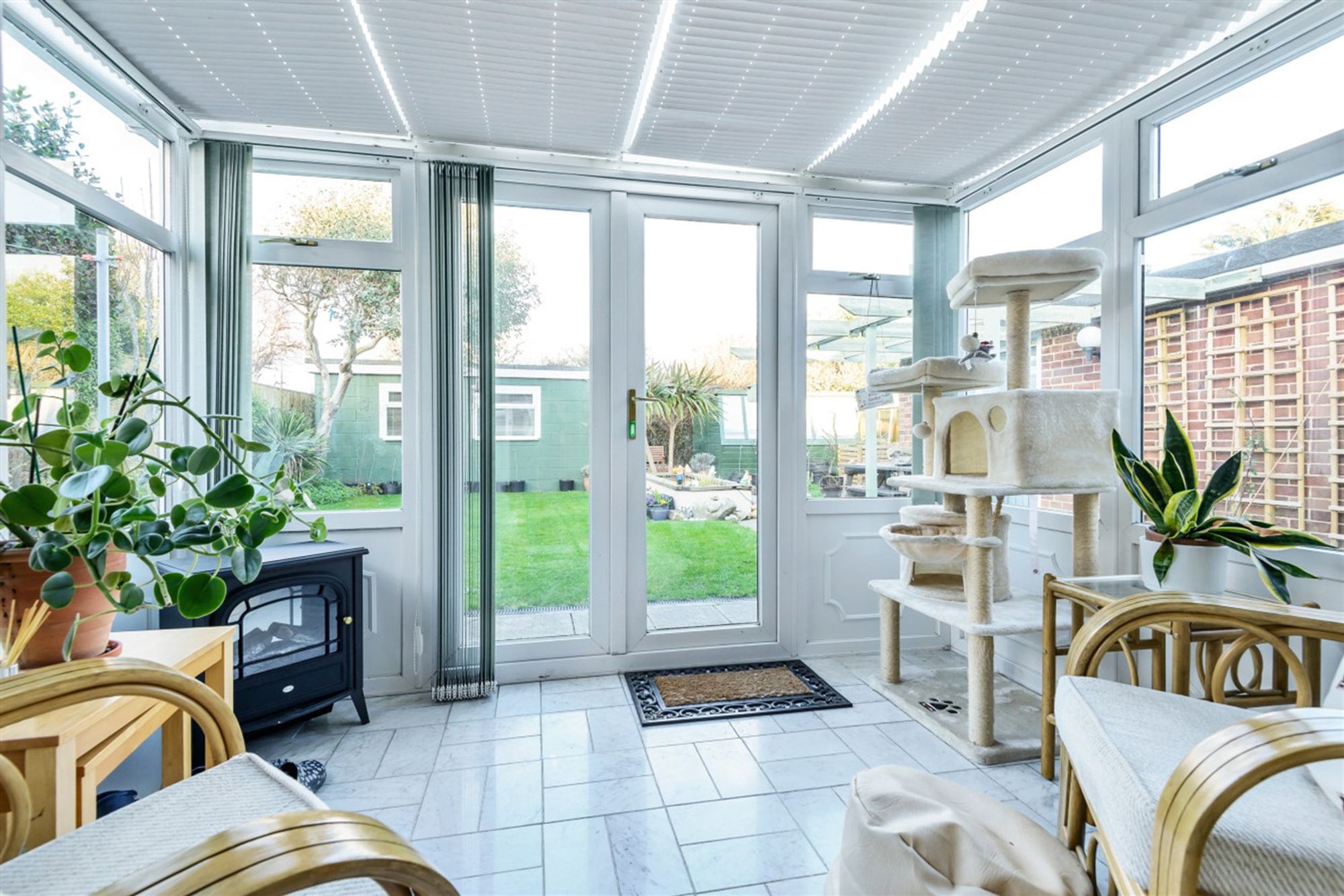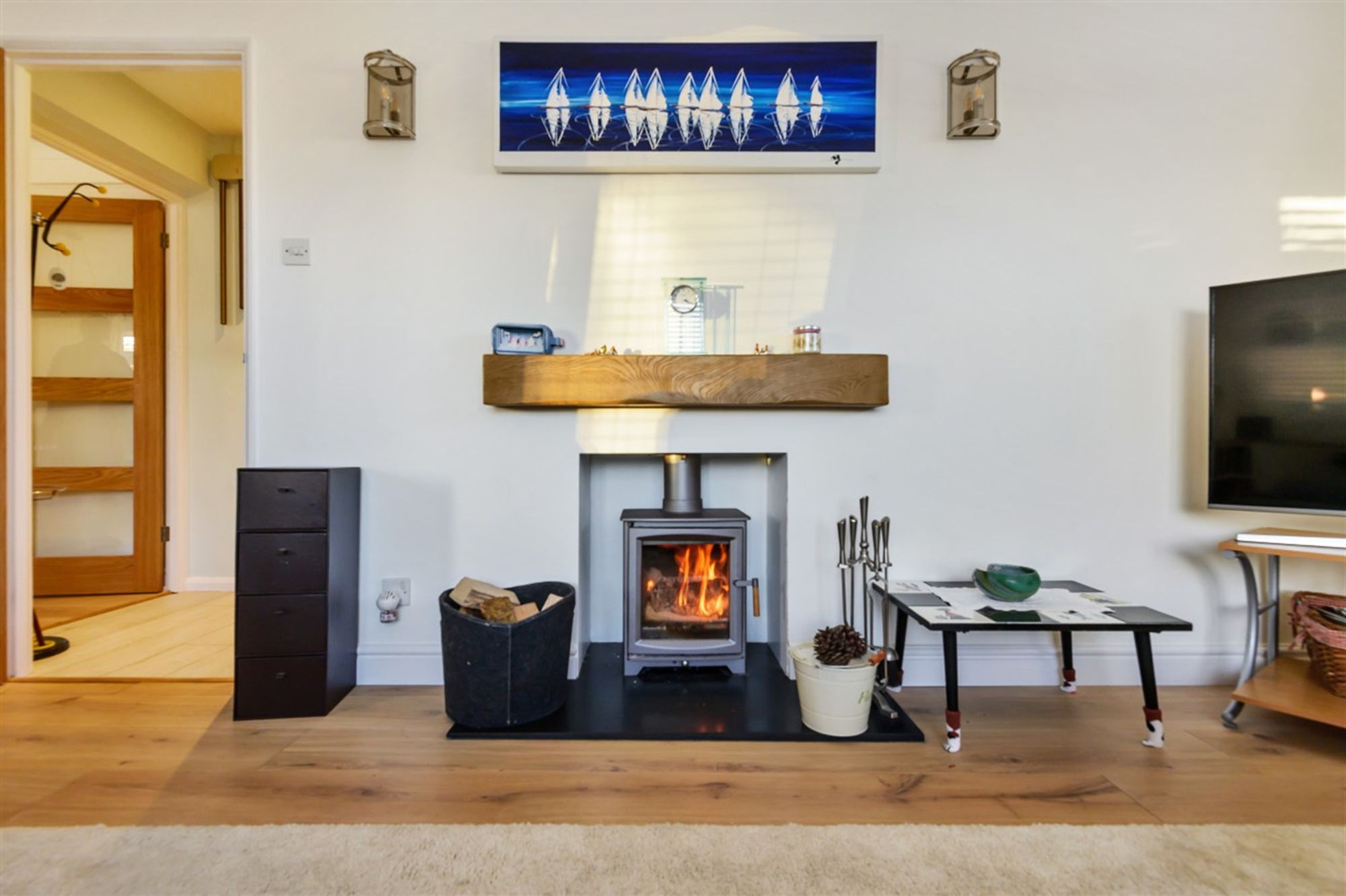 Inside, the bungalow offers a versatile layout with a large sitting room featuring a wood-burning stove, a separate dining room, and a modern fitted kitchen. The principal bedroom enjoys a range of fitted wardrobes and its own en-suite shower room, while two further bedrooms are served by the main bathroom. The study provides a great work-from-home space or could double as an occasional fourth bedroom, with doors leading through to the conservatory and garden beyond.