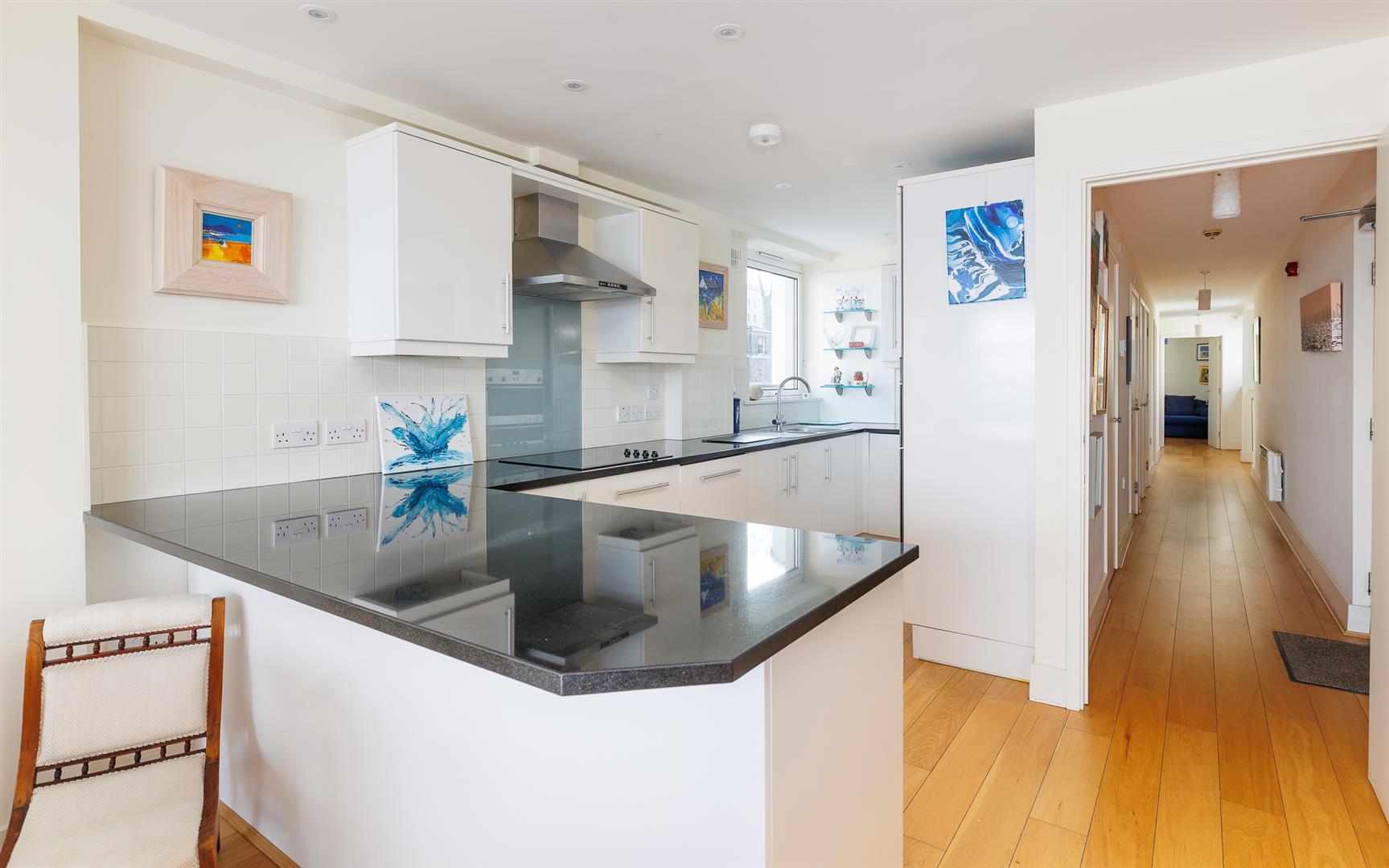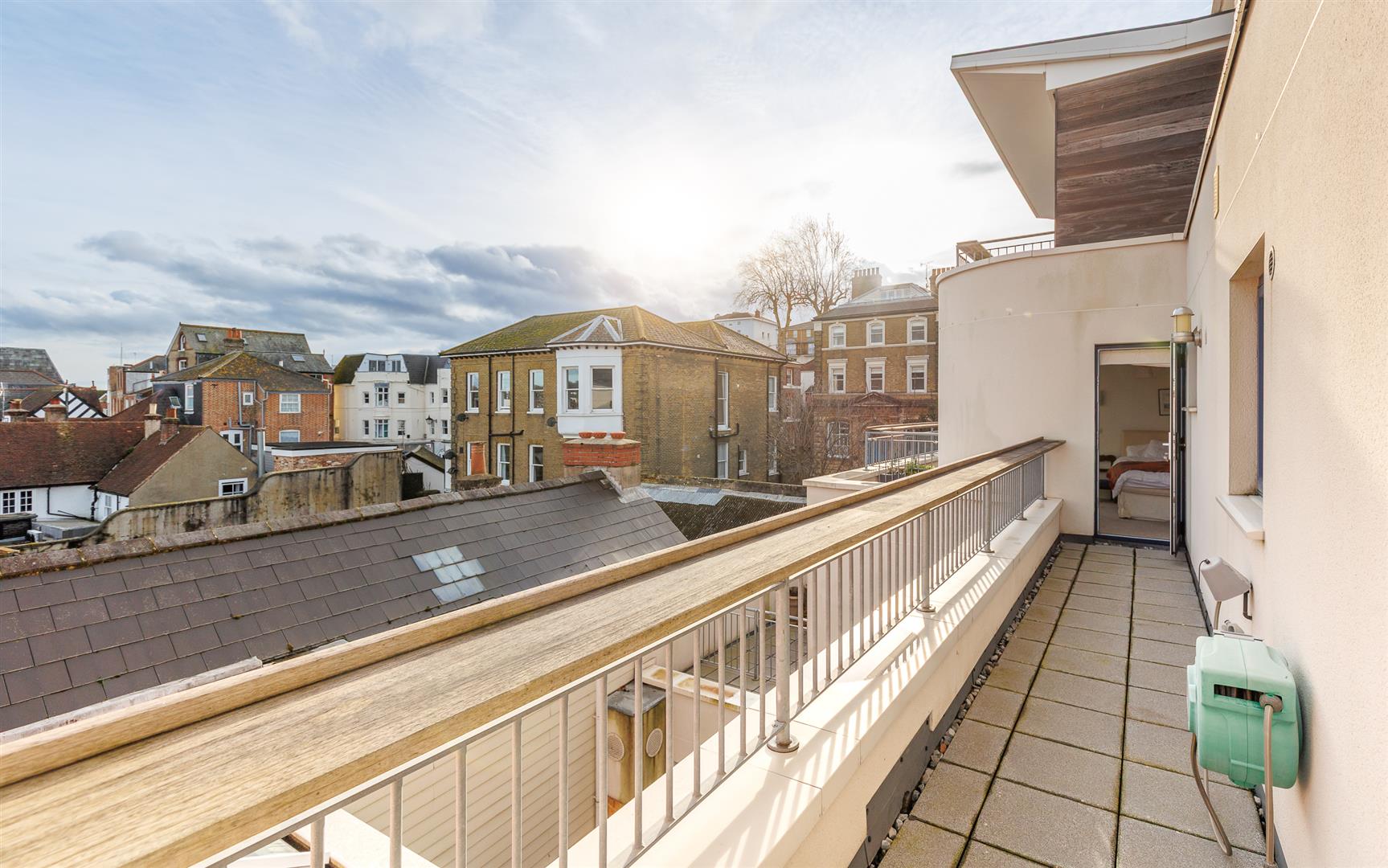 This bright, airy and welcoming home has many high end stylish fixtures and fittings throughout, with oak floorboards, granite kitchen worksurfaces and NEFF appliances. The balcony that wraps around the front and side of the property ensures the daylight can be enjoyed any time of day to relax and enjoy this elevated quiet area.