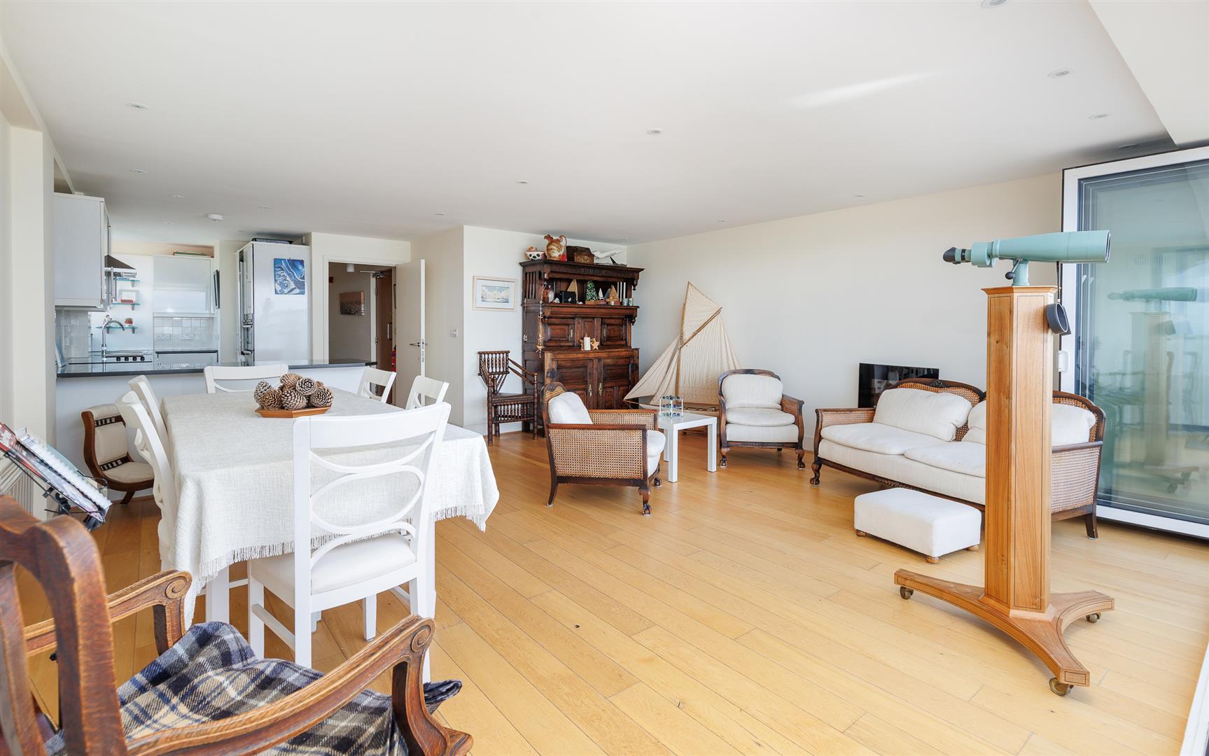 This gorgeous apartment has a wide balcony that allows fantastic views over the Solent to the mainland, a perfect vantage point to watch the ever changing seascape. With three bedrooms - or two large doubles and an office/study - a spacious open plan living/dining/kitchen area and three bath/shower rooms this is a wonderful opportunity to purchase a CHAIN FREE property in this sought after location. Contents by separate negotiation.