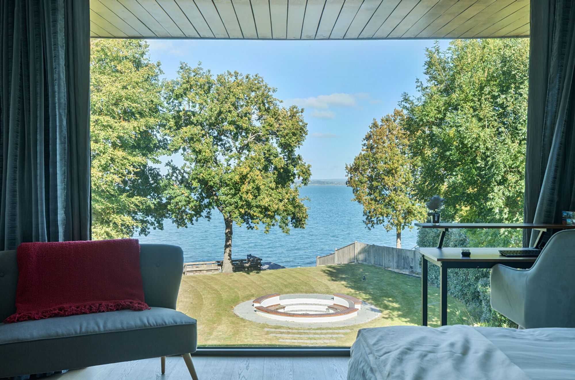 Approached via a private drive with electric gates and CCTV, the property offers excellent security and privacy. The large double garage — currently used as a gym/toy room — includes an EV charger, while landscaped gardens lead directly to the shoreline. Outdoor living is perfectly catered for with a hot tub, BBQ terrace, stone patio, and dedicated firepit area. The private slipway, shorefront seating, storage, beach, and remote mooring provide unrivalled access to the water.