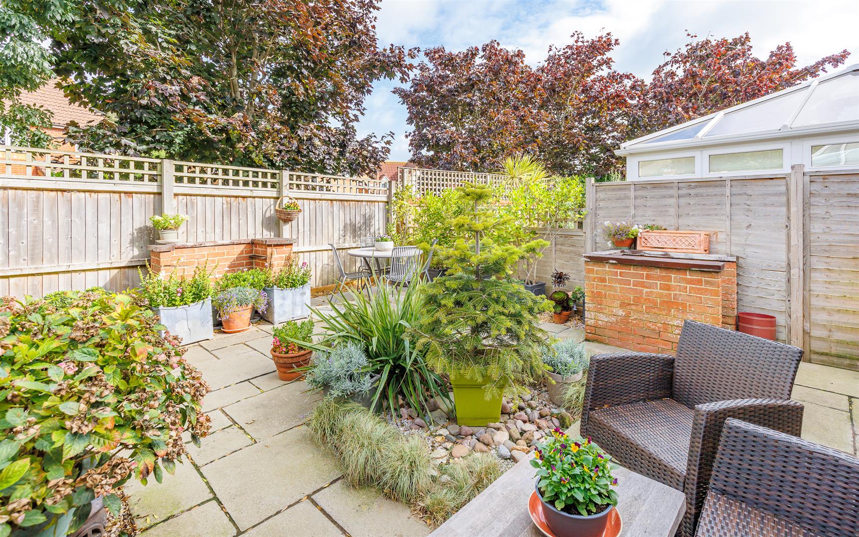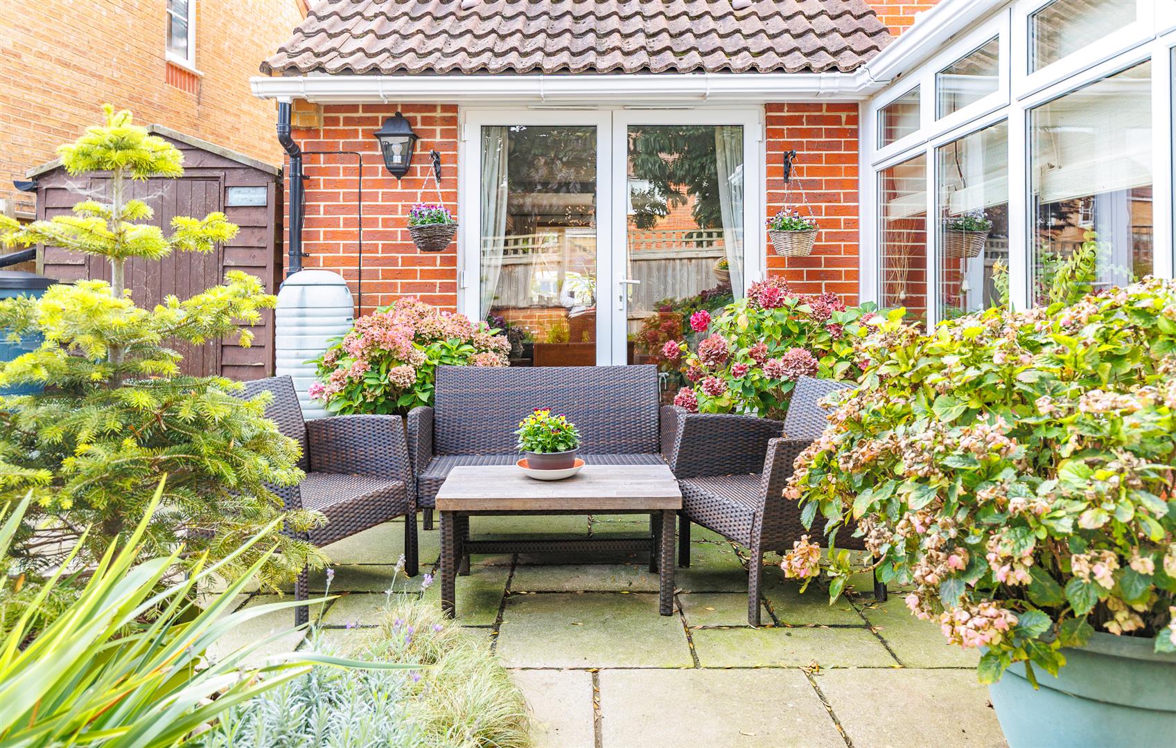 This rear outside space is the width of the house with mature plants and shrubs dotted throughout and two paved seating areas, a lovely quiet area to sit and enjoy the garden. There is also a garden store within this peaceful spot.