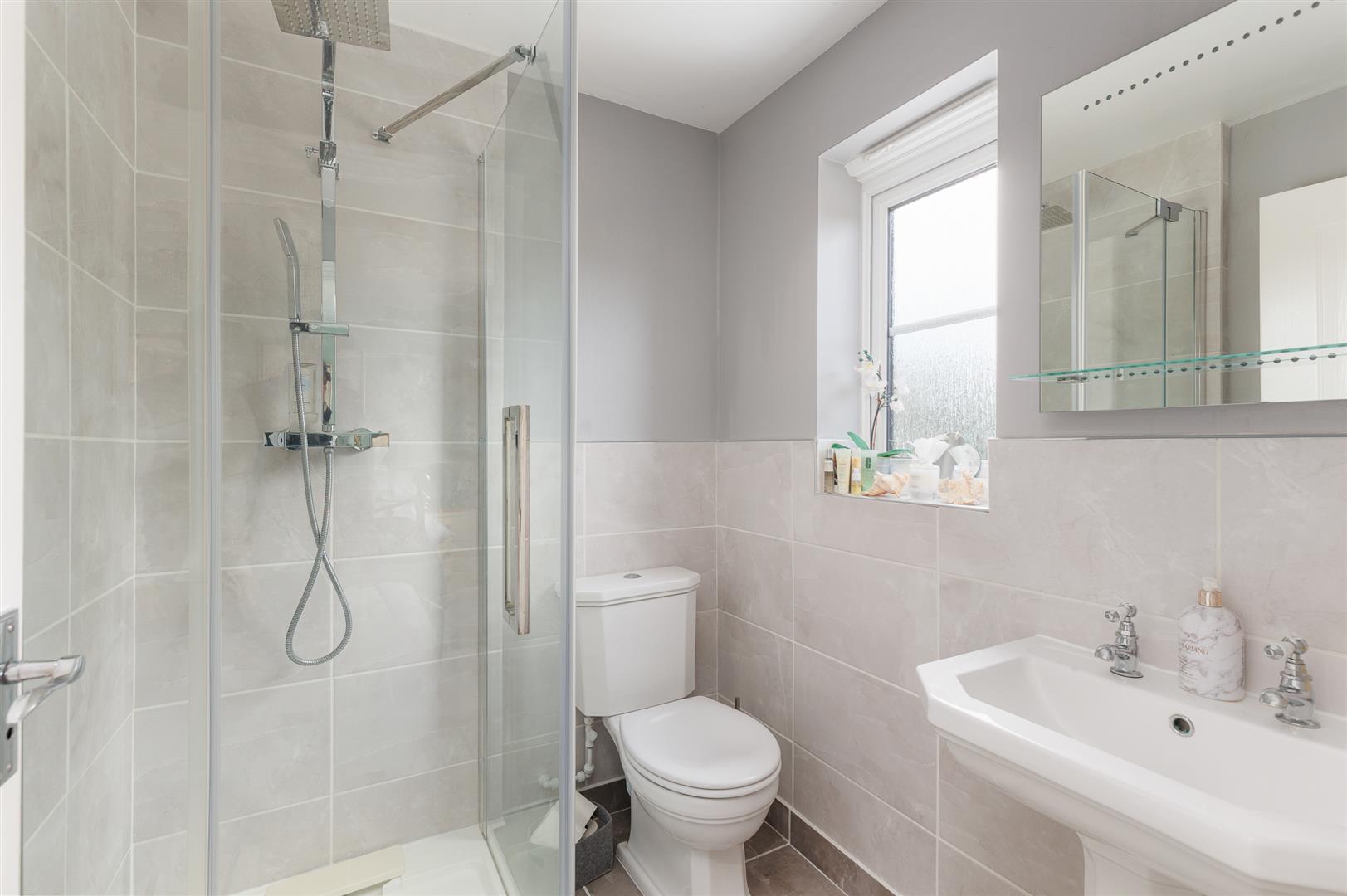 The principal double bedroom has built in double wardrobes and an ensuite shower room, the second double bedroom also has built in wardrobes and overlooks the front of the property. The single bedroom would also make an excellent office or study. The modern bathroom has tiled flooring, a bath with an over head shower, basin and wc.