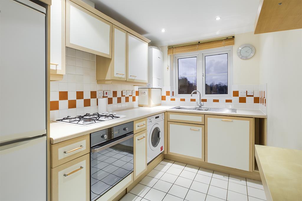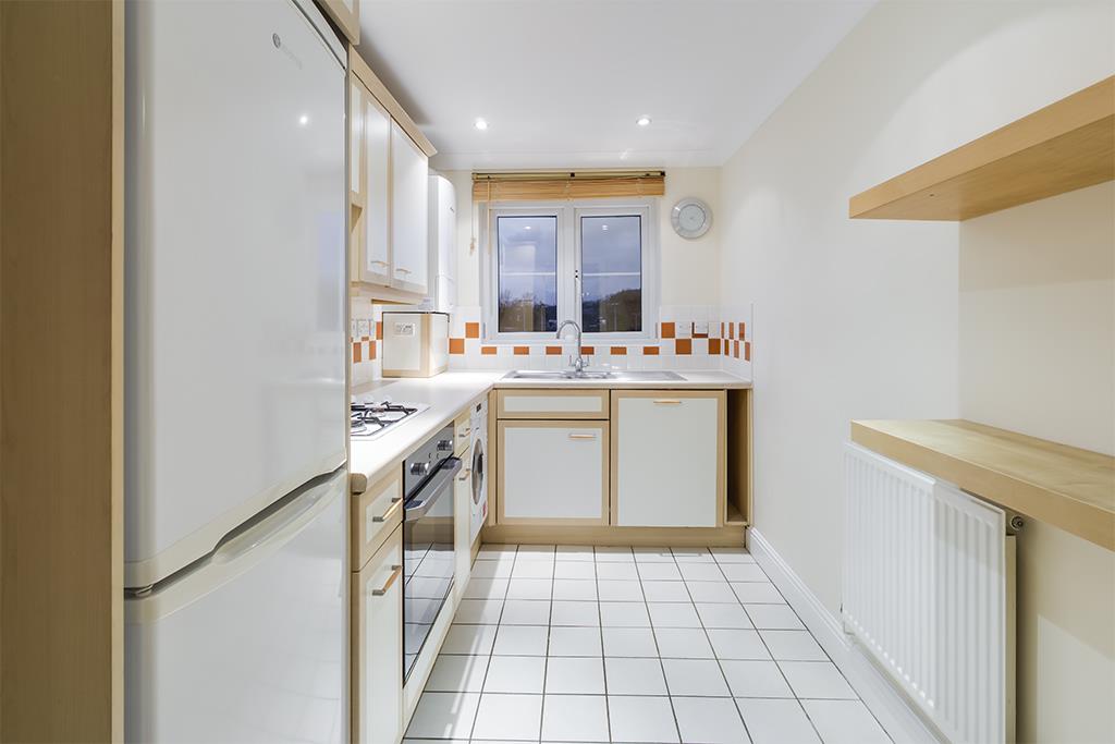 Range of eye and base level units with worktops over. 1.5 sink and drainer, radiator, window, tiled splash back, fridge/freezer, new oven, hob, hood, new boiler, washing machine and dishwasher.