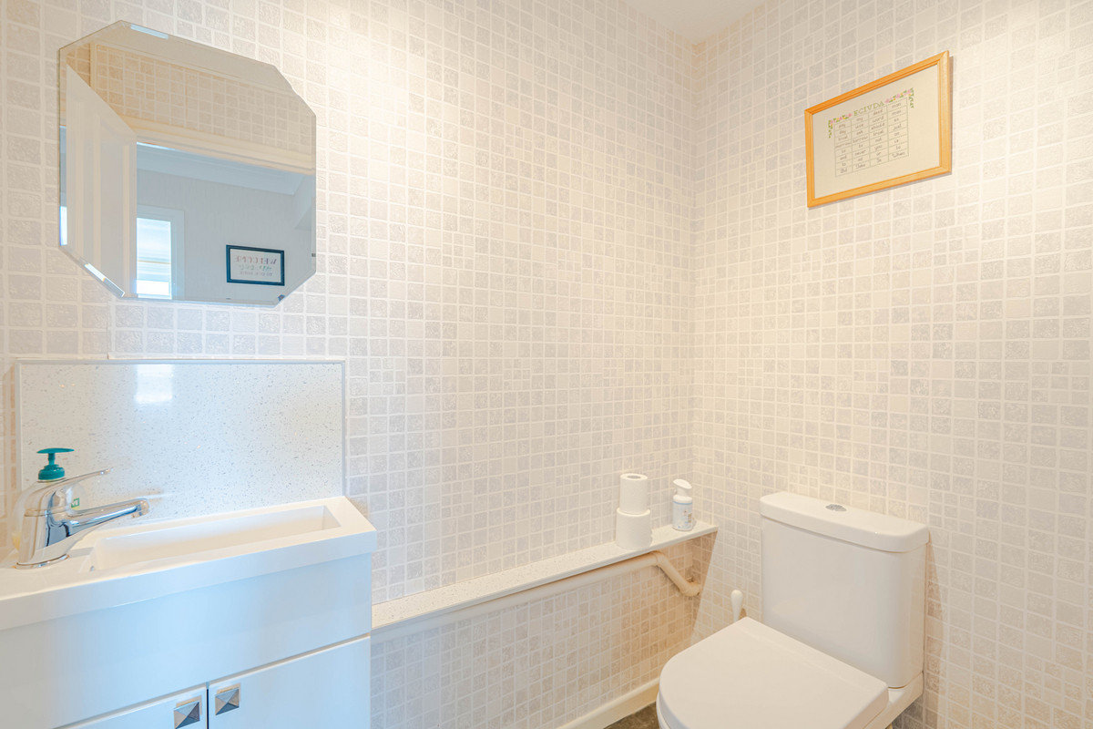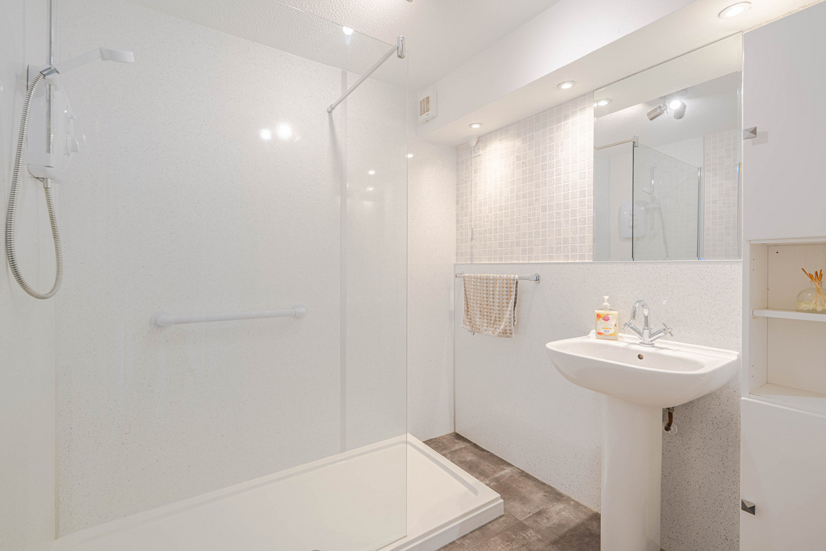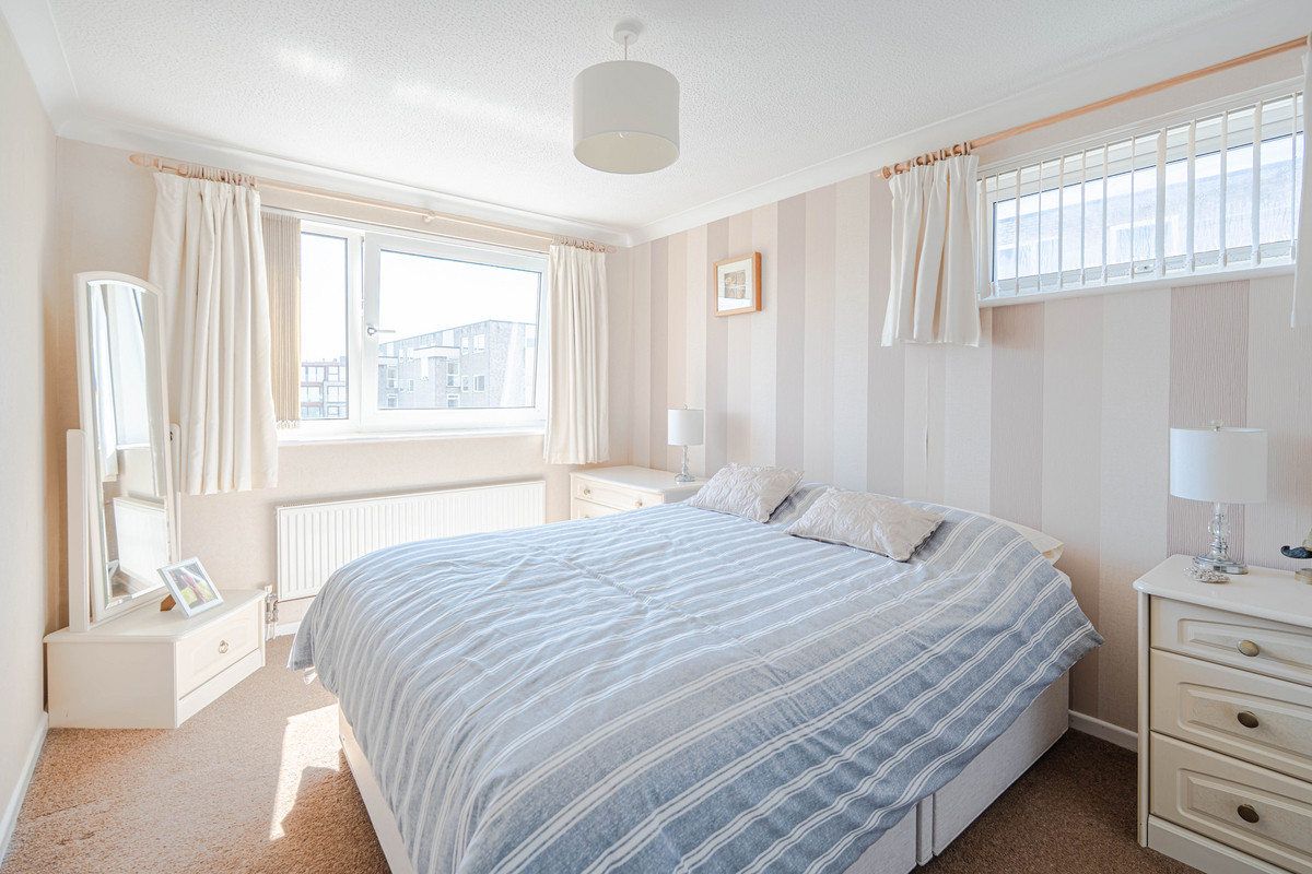 The generously sized bedrooms are calm and comfortable, with plenty of natural light and built-in storage options. The bathroom is sleek and contemporary, finished with neutral tones.