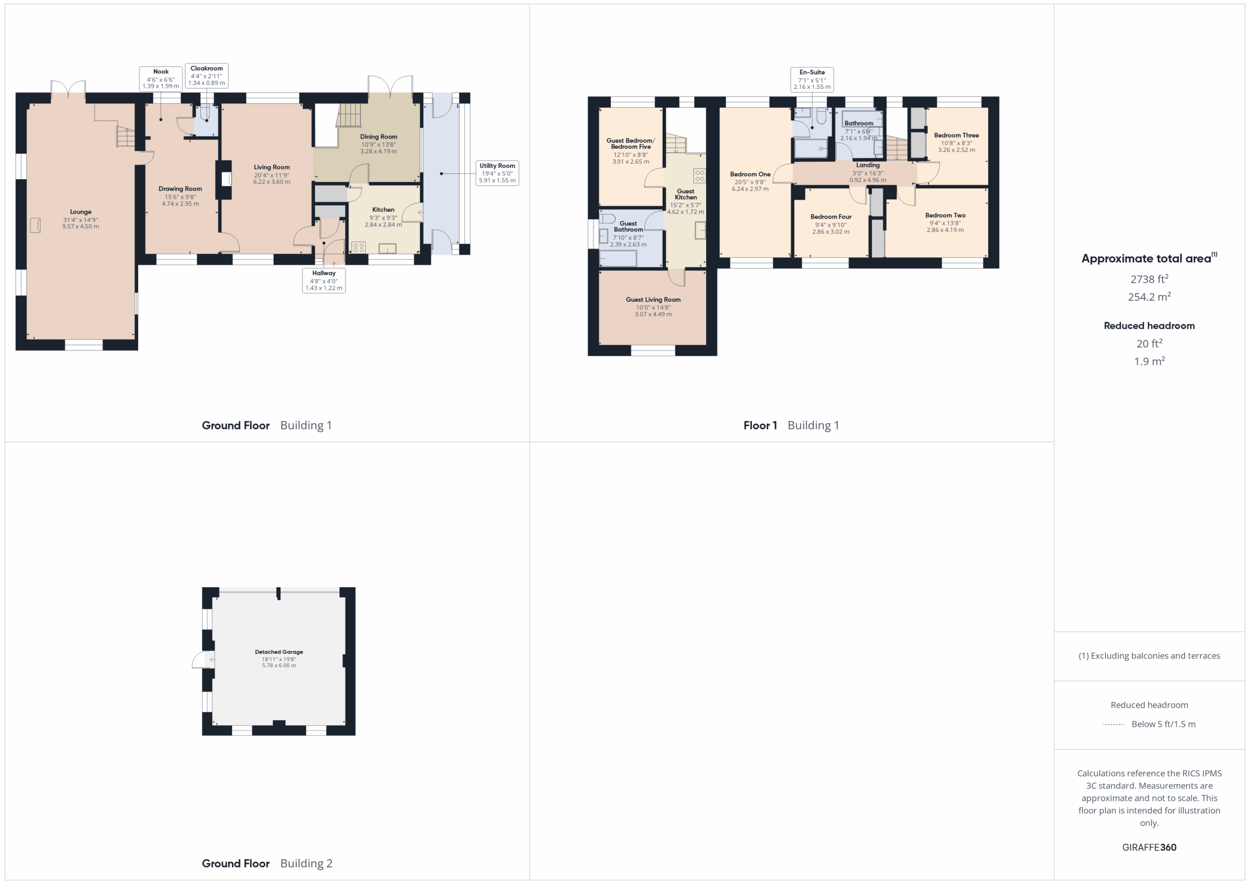 Arranged over two floors, the ground floor comprises a hallway, four generously sized reception rooms offering ample space for socialising and relaxing, a kitchen, utility room and cloakroom. On the first floor are four double rooms, with an en-suite to the master, and a family bathroom. There is also a first floor guest area/potential integral annexe comprising a living room, kitchen, double bedroom and bathroom. Outside are gardens front and rear, a driveway and a detached double garage. The property benefits from gas fired heating. It is built of brick elevations, with hanging tiles to the first floor, under a pitched tiled roof. The windows are combination of UPVC and wood.