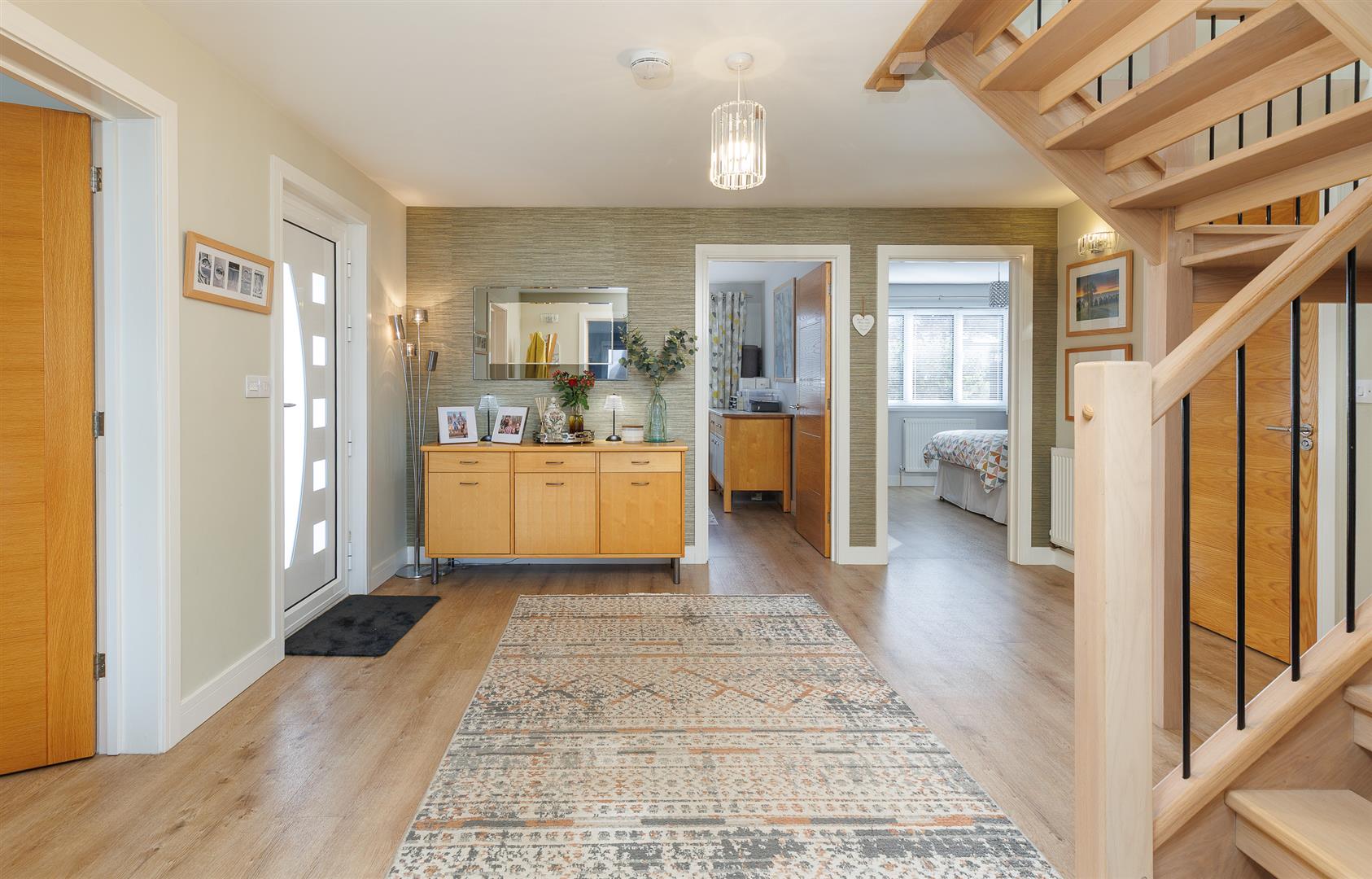 Stepping into a spacious hallway, with the open tred oak staircase curling up to the first floor, there are versatile rooms with a bedroom having a 'Jack and Jill' shower room, and either a separate sitting room adjacent - ideal for an older relative - or for use as an office or further bedroom.