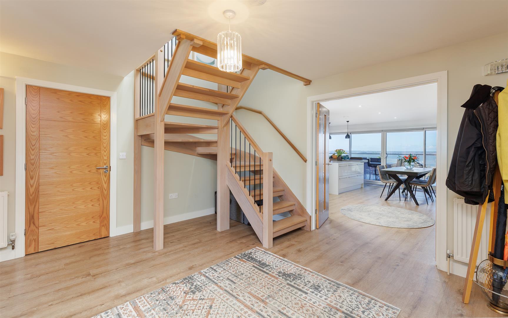 Built by the present owner, this house has been beautifully designed and built with many fabulous features and has been carefully considered to offer both flexibility and flow. The windows and doors are finished with Corian and there are reflective blinds on the windows reducing heat and glare into the house, LVT flooring is throughout the ground floor and first floor bathrooms and there are wide double or sliding doors throughout, giving easy access. All rooms are light and airy with high ceilings on the first floor, and upmarket finishes and fittings have been used throughout reinforcing the quality and attention to detail put into this coastal home, both inside and out.