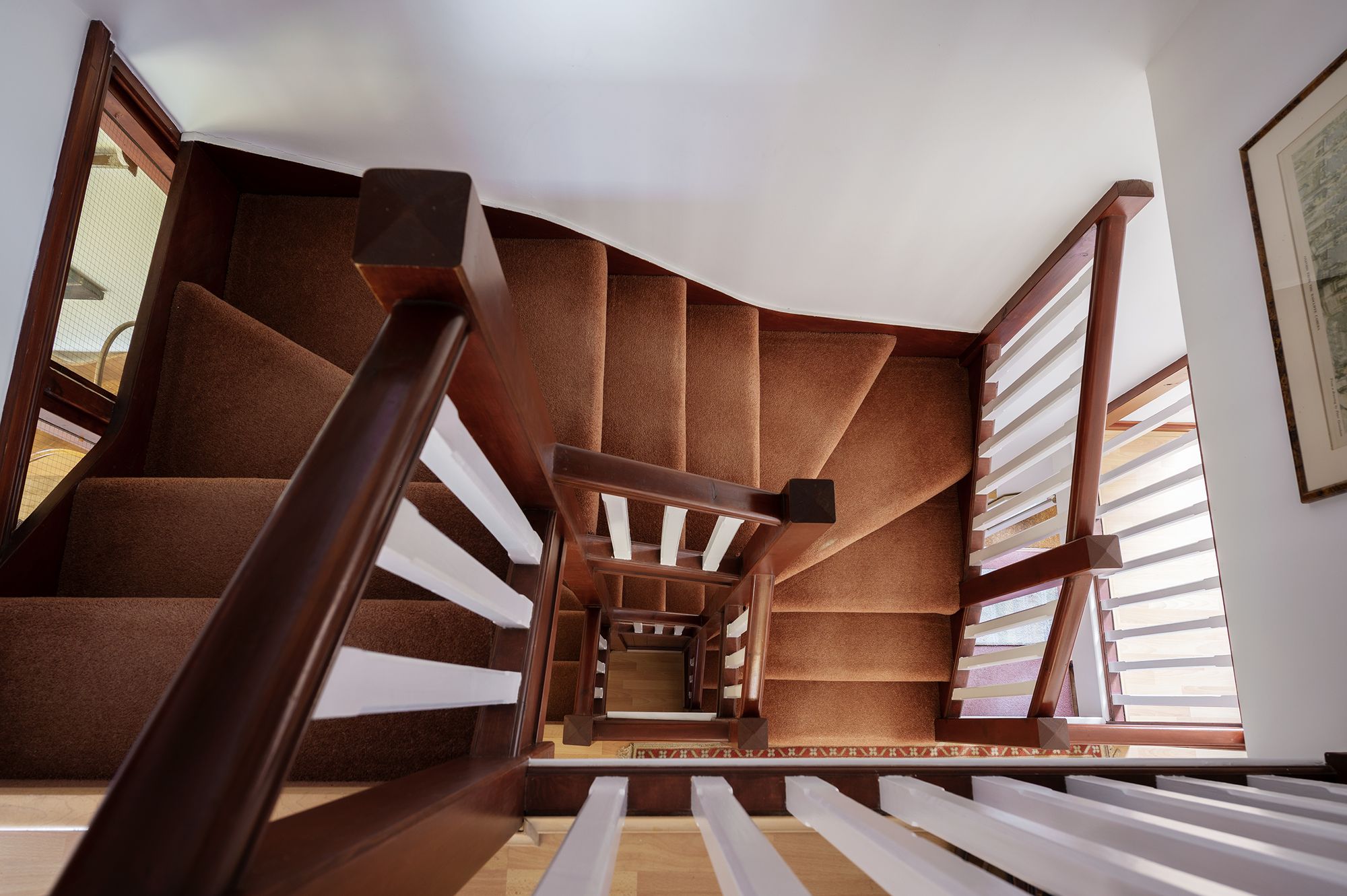 Across the landing, a separate West-facing Balcony captures the changing light across the day, offering a peaceful vantage point over the courtyard and surrounding greenery. A Study area on the landing provides a considered space for work or reading.