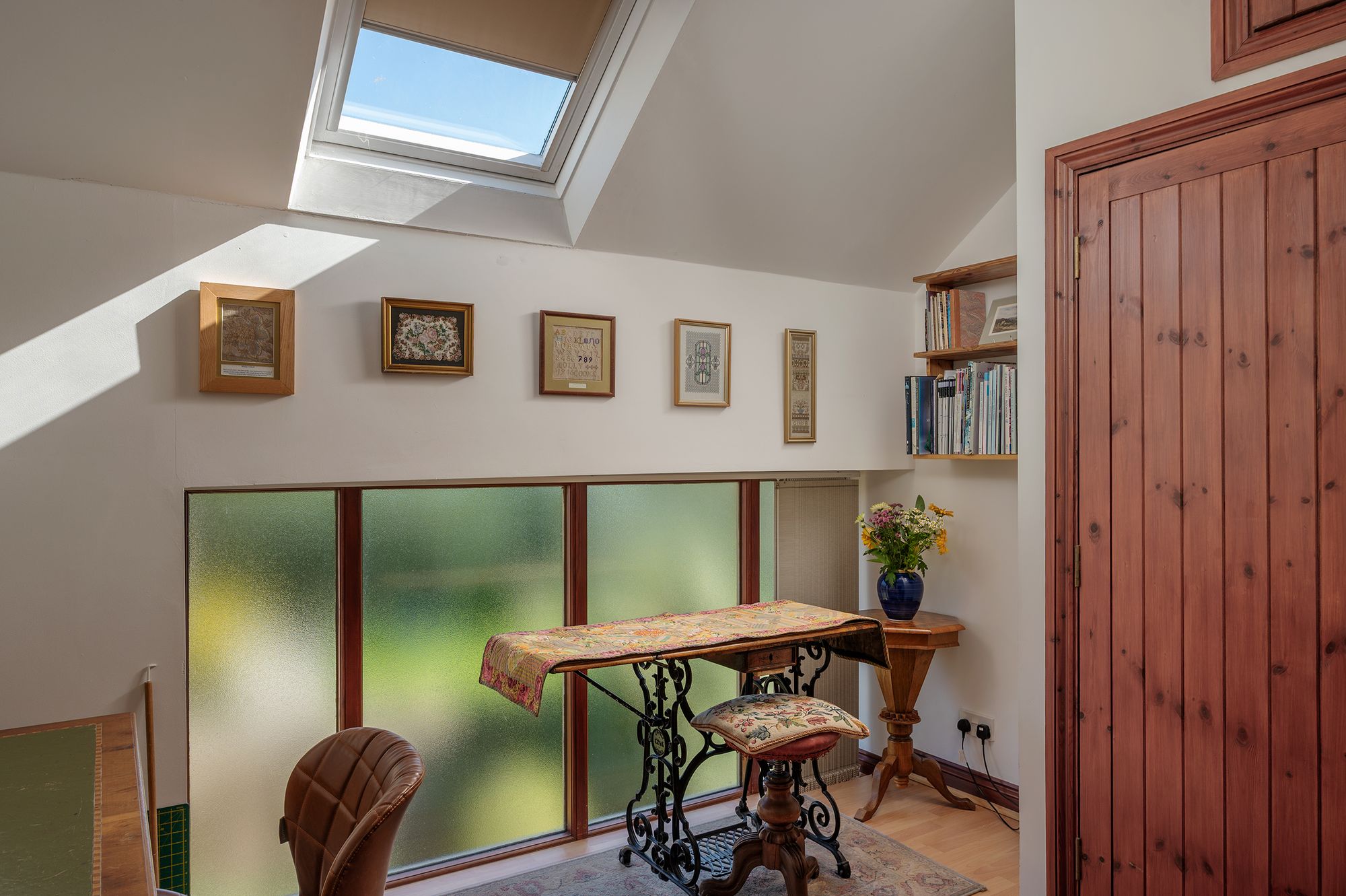 In addition to the main accommodation, Threshers benefits from a particularly generous Garage, set separately from the home with Parking directly in front. Outward opening wooden doors provide excellent access. Above, a thoughtfully created mezzanine level introduces a versatile additional layer, illuminated by a skylight, this unexpected space lends itself equally well to use as a Workshop, studio or Storage, enhancing the practicality of the home without compromising its sense of character.