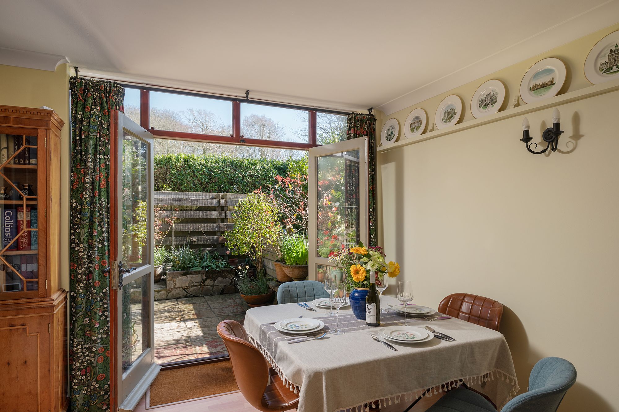 Ascending to the first floor, the home opens into a beautifully arranged Living Space where day-to-day life centres. The Sitting Area, Dining Area and contemporary Kitchen flow together with ease, creating a sociable environment equally suited to quiet evenings or entertaining. French doors lead out to the private Garden, which has been carefully arranged for ease and enjoyment, with a paved Patio and raised stone beds providing structure and colour throughout the seasons.