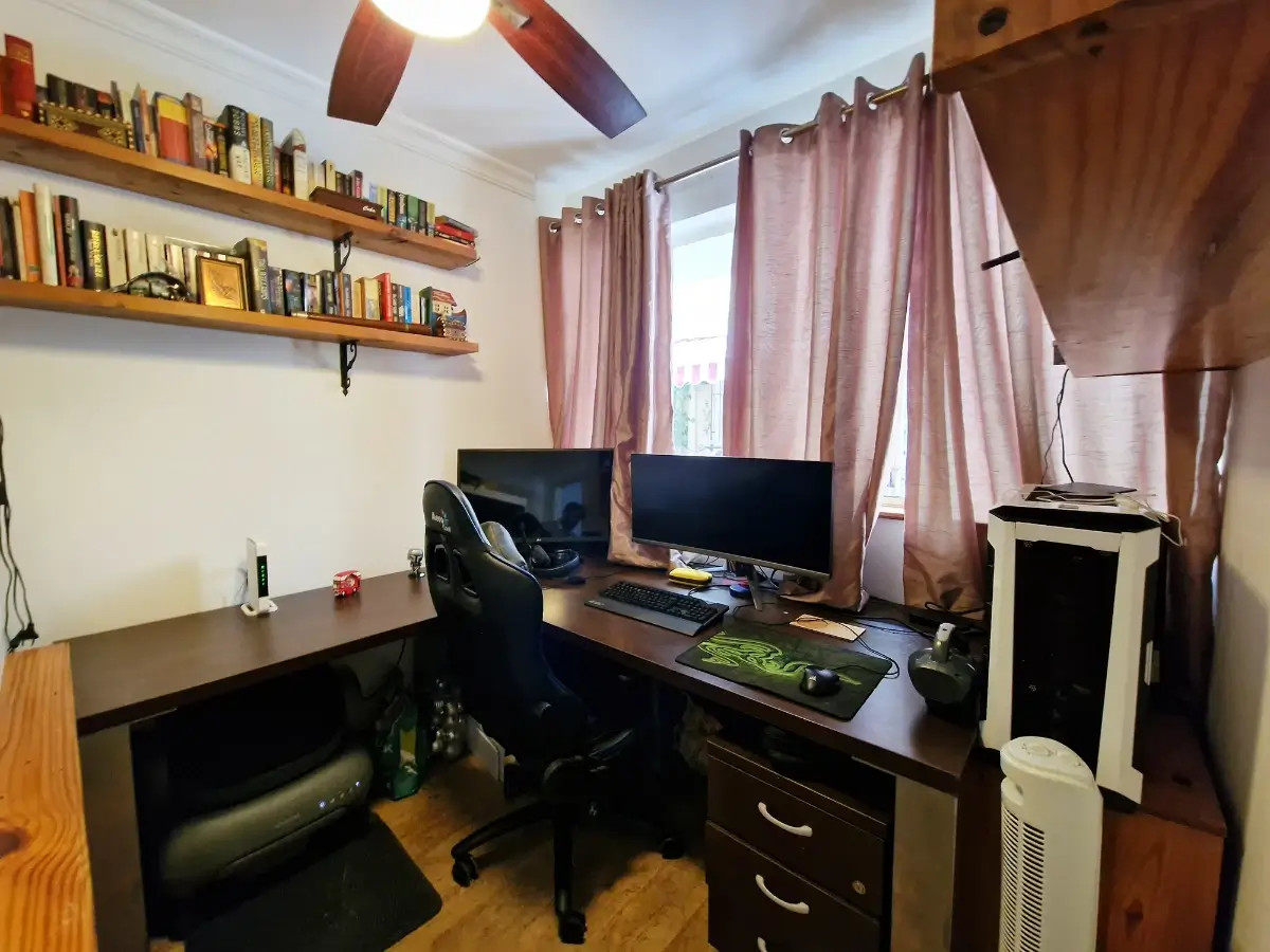 Each of the four spacious bedrooms offers large bright windows. The extensive bathroom features a bathtub, a walk-in shower, and a separate utility space for added convenience.