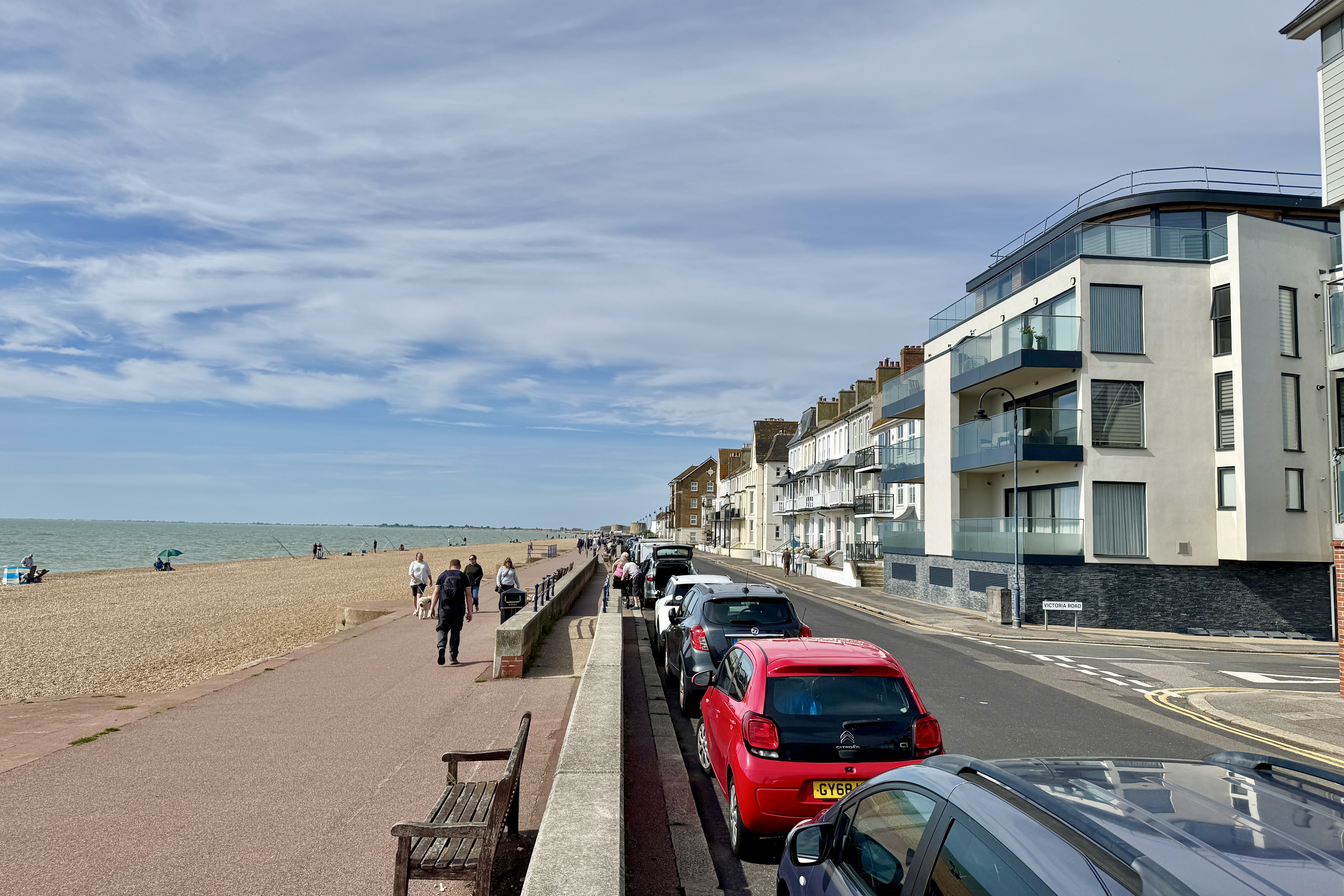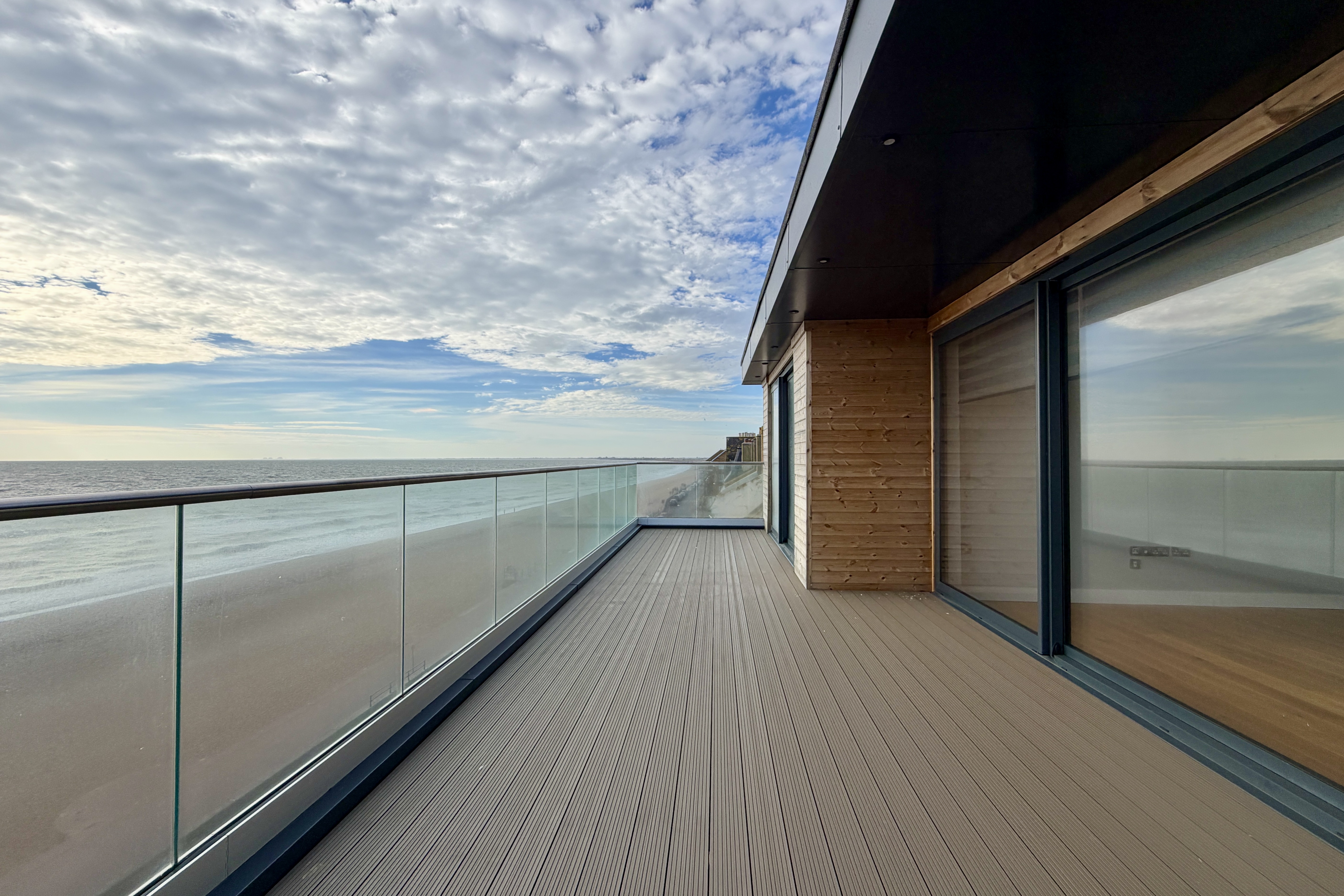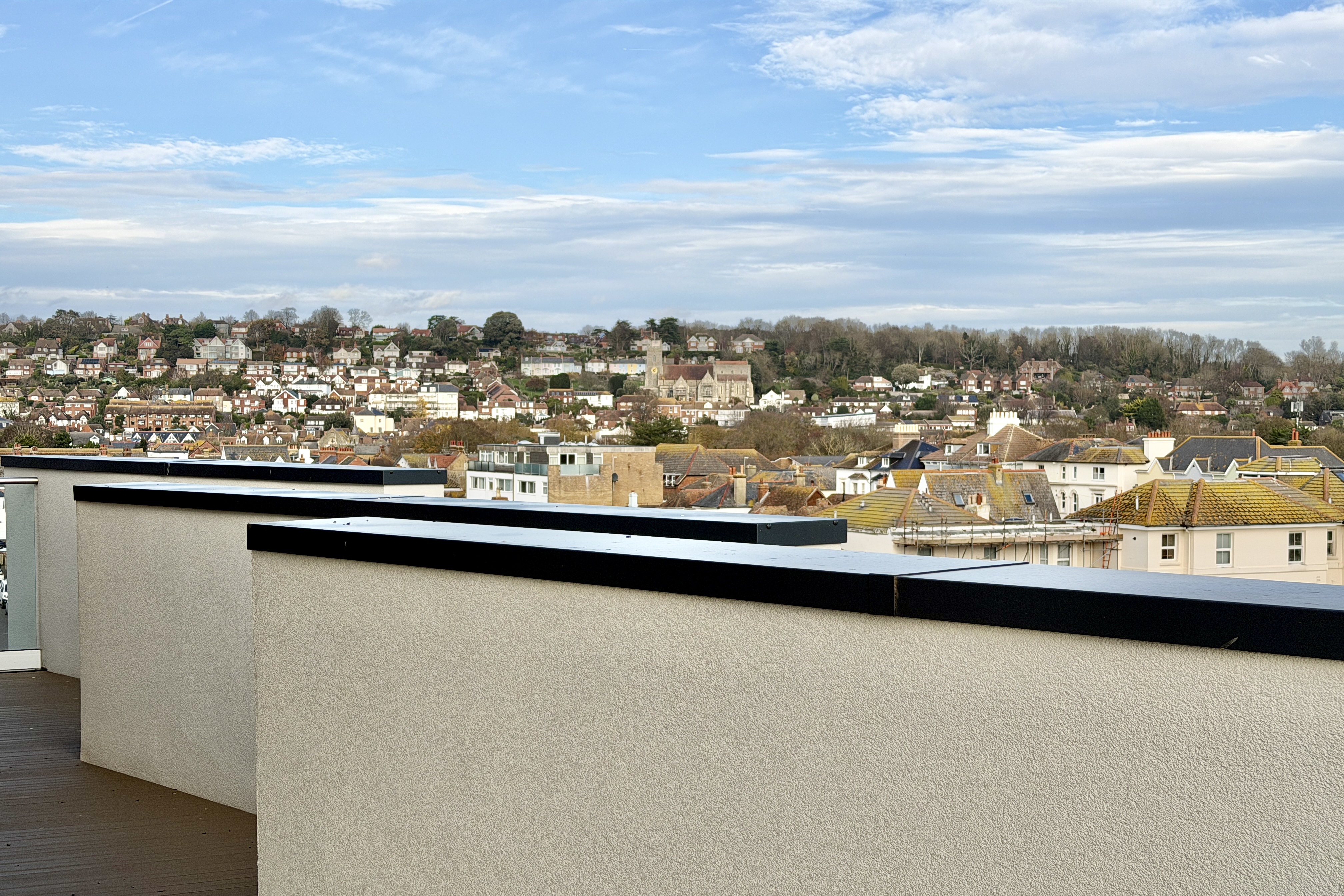 with aluminium decking, breathtaking panoramic sea views over English Channel with views to side and rear over Hythe Town to St Leonard’s Church, power points and external down lights